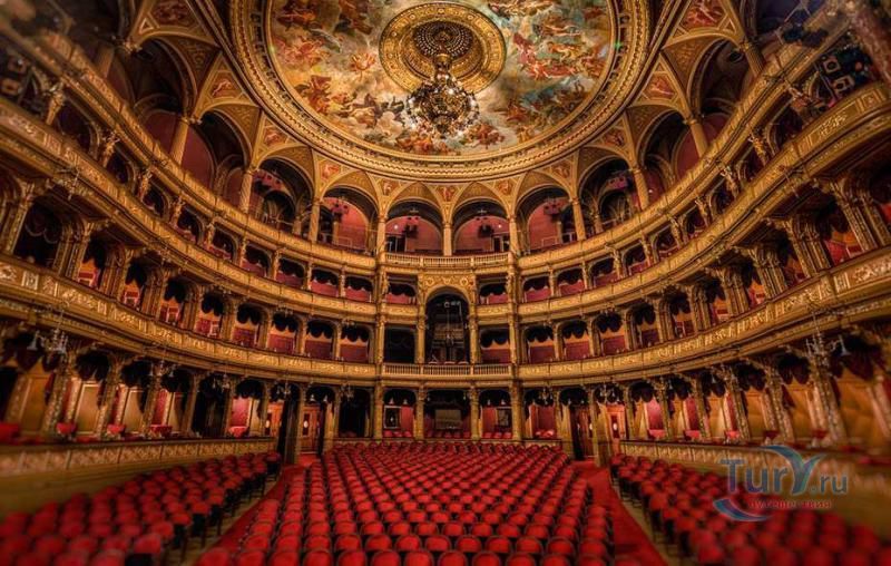 Венгерский государственный оперный театр, открытый в 1884 году, является крупнейшим оперным театром в Венгрии. Театр является также основной сценой и для Венгерского национального балета. Здание театра, построенное в стиле неоренессанс было спроектировано архитектором Миклошем Иблем в период между 1875 и 1884 годами. Строительство было профинансировано правительством, а также Австро-Венгерским императором Францем-Иосифом. Здание театра, ранее носившее название Венгерский королевский оперный театр, богато украшено выполненными в стиле барокко орнаментами. Оперный театр является шедевром венгерской архитектуры. Зрительный зал, вмещающий 1261 зрителя, выполнен в традиционной для театров форме подковы. По своей вместимости и размерам театр не вошел в число крупнейших, но по качеству акустики считается одним из лучших театров оперы в мире. По своим акустическим возможностям сцена зала занимает третье в мире место, после «Ла Скала» и «Парижского оперного театра». Интерьер театра декорирован скульптурами и картинами ведущих деятелей искусства периода 19 века. Особый интерес представляет настенная живопись работы Берталана Секея, Мора Тана и Кароя Лотца, расположенная вдоль лестниц внутри здания и в зрительном зале. Экстерьер театра украшают статуи Ференца Листа – самого известного композитора Венгрии, и Ференца Эркеля - автора венгерского национального гимна. За время своего существования театр повидал большое количество известных музыкантов. Среди них были: Густав Малер, Отто Клемперер, Янош Ференчик, Бела Барток и Джакомо Пуччини, дважды ставивший свои оперы на сцене театра. При проектировании и строительстве театра были использовано новаторское для того времени оборудование. Именно здесь впервые было установлено гидравлическое оборудование, использовавшееся для подъема сцены. Во время Второй мировой войны театр практически не пострадал. В 1945 году были возобновлены оперные постановки. Спустя еще пять лет зал был расширен. В 1979 году театр был закрыт на капитальный ремонт по причине аварийности здания. Торжественное открытие Венгерского государственного оперного театра состоялось ровно через сто лет после первой премьеры, поставленной на сцене Венгерского королевского оперного театра. При посещении Венгерского государственного оперного театра стоит учесть то, что в театре гардероб платный (за исключением гардеробов для балконов), оплата незначительная, но только за наличный расчет. Антракты больше, чем сами представления. В перерывах сервируется буфет, где разливают токайское вино по бокалам, продают бутерброды. В антракте можно выйти с бокалом вина на террасу на верхнем этаже, которая открывает великолепный вид проспект Андраши. Билеты в оперу можно приобрести через интернет, либо в кассах театра. О приобретении билетов, стоит позаботиться заранее, так как цены – достаточно демократичны. Билеты на места в первом ряду на двоих обойдутся не более 100$. Так что свободных мест на представлениях не бывает. Помните, что в Государственной Венгерской опере действует дресс-код. Дамы должны быть в элегантных вечерних платьях (драгоценные украшения приветствуются), мужчины - во фраках, ну или хотя бы в классических костюмах. Кроме обычных театральных постановок, ежедневно в театре проходят экскурсии на различных, в том чис