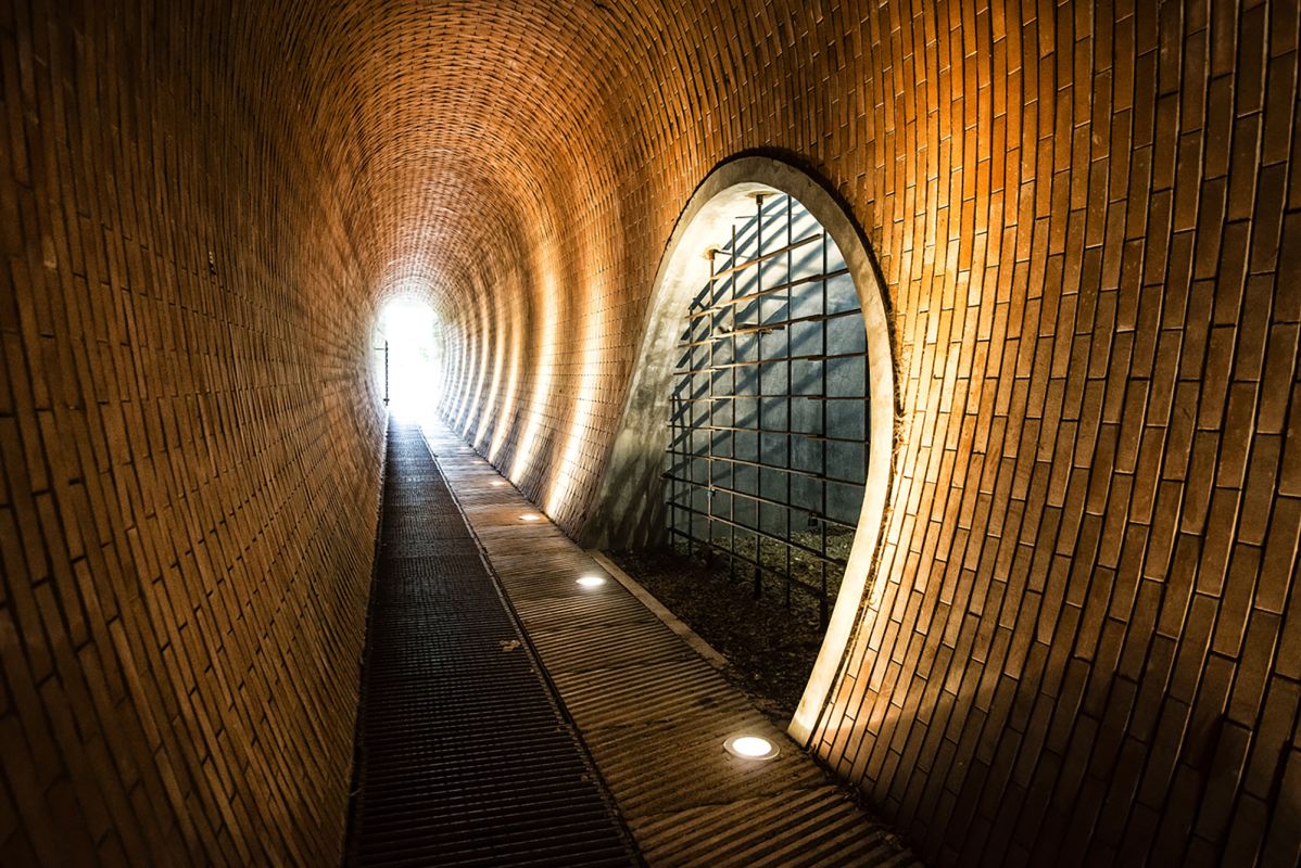 Крутой тропинкой спуститесь в 9 Олений ров, бывший ранее королевским заповедником с большим количеством зверей. Вид снизу на могучие деревья и мощные стены Пражского Града очаровывает, как и царящие здесь умиротворение и покой. Следуйте дальше по направлению к эллипсовидному туннелю для пешеходов, который построен современным архитектором Йозефом Плескотом.