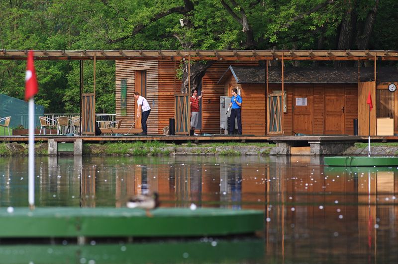Прекрасная природа, окружающая замок-отель Chateau St. Havel, дополнятся замечательным арелом для гольфа, который предлагает Aquadriving, т.е. возможность удара мячом прямо на водную гладь пруда. Для тренировки короткого удара здесь имеется Chipping green.