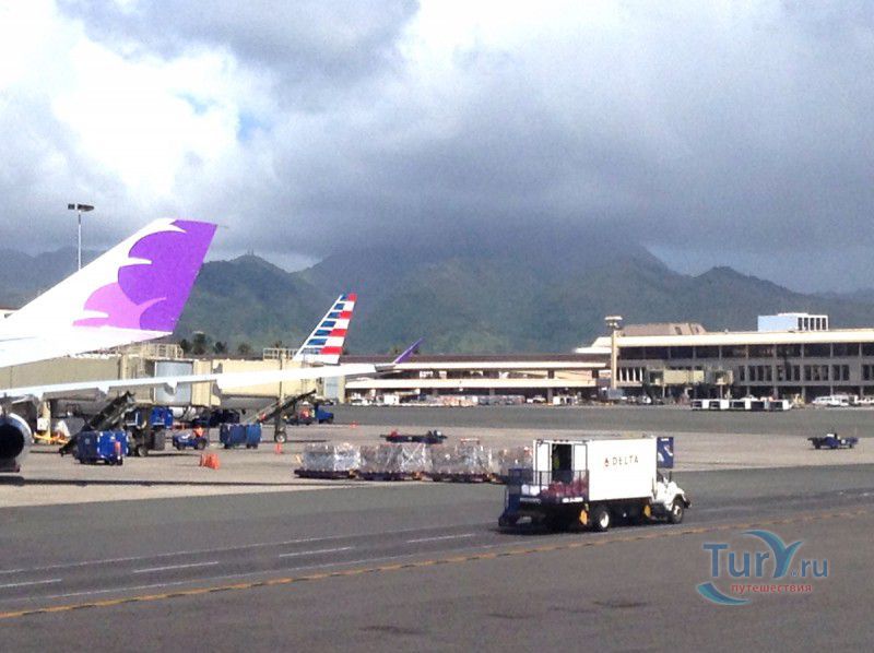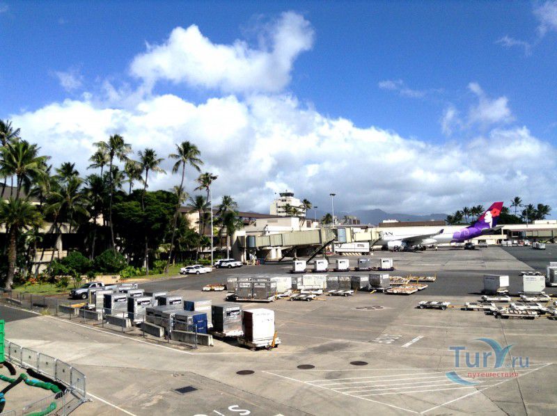 Международный аэропорт Гонолулу Honolulu International Airport - коммерческий и военный аэропорт, расположенный на одном из главных островов Гавайского архипелага - острове Оаху, в пяти километрах к северо-западу от бизнес-центра города Гонолулу. Гонолулу является главным аэропортом Гавайских островов и одним из самых загруженных аэропортов Соединённых Штатов Америки. Аэропорт является главным хабом Гавайских Авиалиний (Hawaiian Airlines) - крупнейшей авиакомпании Гавайских островов, выполняющей регулярные рейсы между населённым островами Гавай, а также международные рейсы в Австралию, Самоа, Таити, Филиппины и в города США. Помимо Гавайских Авиалиний, в аэропорт Гонолулу летают практически все крупные авиакомпании Соединённых Штатов и международные коммерческие авиаперевозчики. Ежегодно пассажирооборот Гонолулу составляет более 21 миллиона человек.