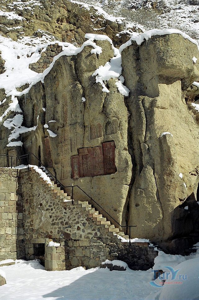 К западу от главного храма находится притвор, одну из стен которого заменяет утес. Почти одновременно с сооружением притвора строители углубились в толщу туфобрекчии (мелкозернистой горной породы, легко поддающейся обработке), изваяв в ней в два яруса несколько помещений, которые и по сей день вызывают неподдельное изумление у многочисленных посетителей своими архитектурными формами и богатой скульптурной отделкой, характерными для армянского искусства XIII века.