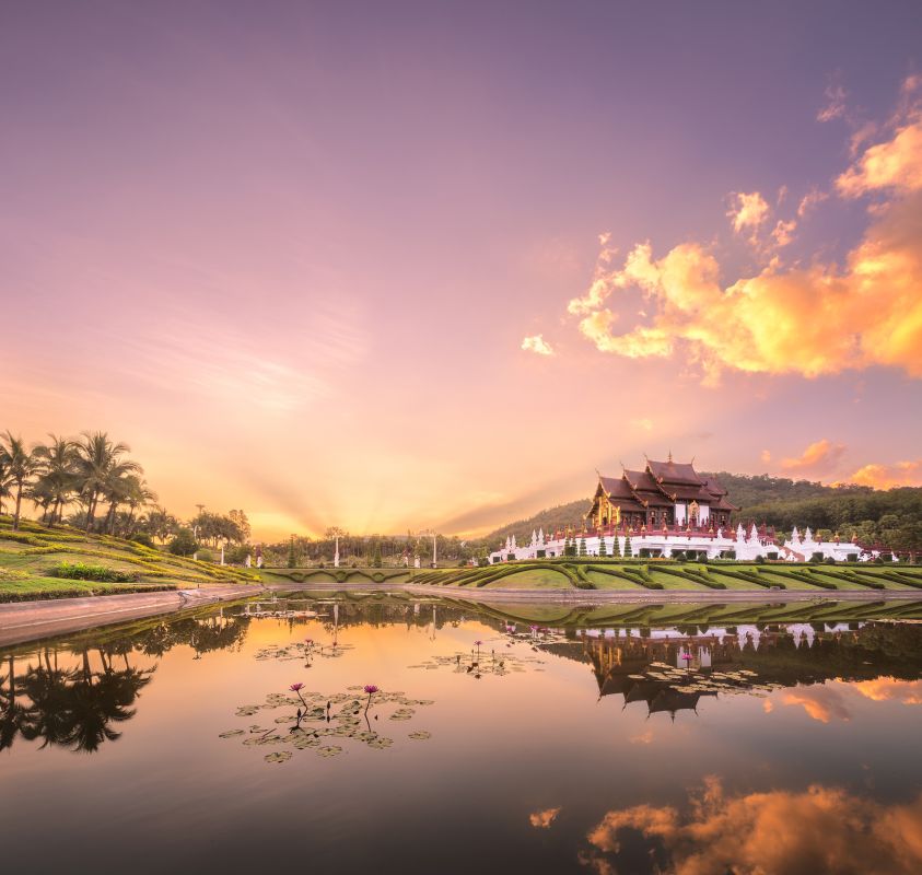 После успеха выставки садоводства мирового класса Royal Flora Ratchaphruek, посвященной празднованию 60-летия восшествия на престол Его Величества короля Пумипона, и его 80-летие в 2006-2007 гг., кабинет министров Таиланда решил сохранить состояние парка как новейшего туристического направления Чиангмая. Королевский парк Ratchaphruek находится в районе Mae Hia и занимает площадь в 240 000 квадратных метров, разделенных на разные зоны, где можно с удовольствием целый день. В центре возвышается строение в стиле подлинной архитектуры Ланна - Королевский павильон Хо Кхам Луанг, где находится выставка картин о жизни и творчестве короля Пумипона. Посетители не должны упускать возможность посетить Сад орхидей, чтобы посмотреть на редких представителей этого вида, и Международные сады, чтобы окунуться в разнообразные садоводческие стили, созданные разными странами-участницами, такими как Южная Корея, Китай, Япония и Бутан, чтобы представить их культуры. Среди других зон - «Мир насекомых», «Редкие растения» и «Корпоративная зона». Для удобства посетителей по территории парка курсируют трамваи. Рекомендуется захватить с собой зонтик от солнца, так как днем может быть очень жарко.
