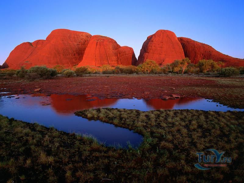 Многие туристы приезжают сюда, чтобы насладиться фантастической игрой цвета скалы Улуру. Особые свойства позволяют ей менять цвет в зависимости от освещения в течение суток. На рассвете черный силуэт монолита светлеет, приобретая темно-лиловый оттенок, превращается в пурпурно-красный, переходит в розовый, а затем в золотой. К вечеру бывает пройден весь спектр - от золотистых и розово-красных оттенков к рубиновому, малиново-красному и пурпурному. Это объясняется тем, что монолит состоит из красного песчаника с высоким содержанием полевого шпата и наличием разнообразных окисей железа. Благодаря такому набору веществ гора меняет свой цвет в течение дня.