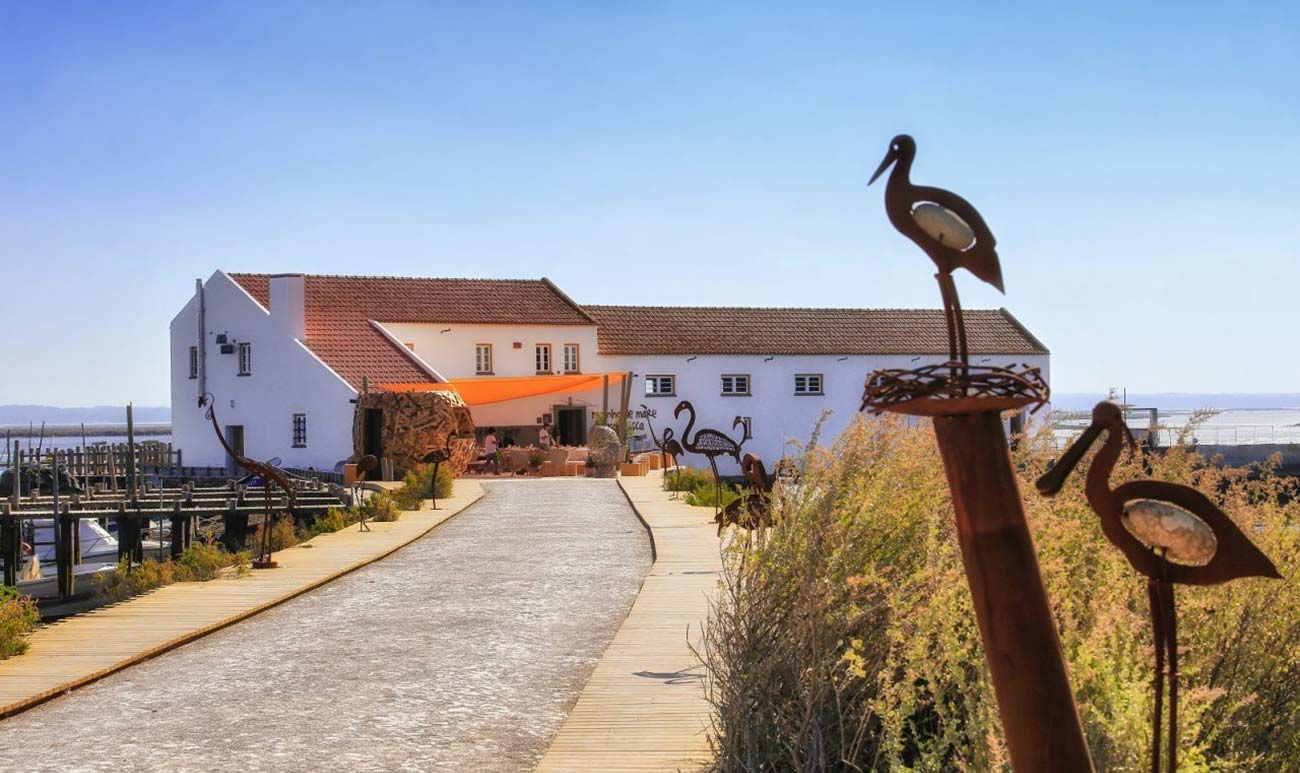 Приливная мельница Mourisca, которая, возможно, восходит к 17 веку, расположена в природном заповеднике устья Садо, в районе соляных ванн и солончаков.
