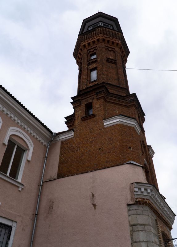 Украшенное выполненными с помощью декоративной кирпичной кладки архитектурными элементами (оконные ниши, профилированный лобовой карниз, широкий пояс раскрепованного ступенчато увеличивающегося фриза, зубчатый декор модильонов и двухступенчатые кронштейны) сооружение башни-каланчи, не смотря на внушительность своей конструкции, имеет устремленный в высь легкий облик.