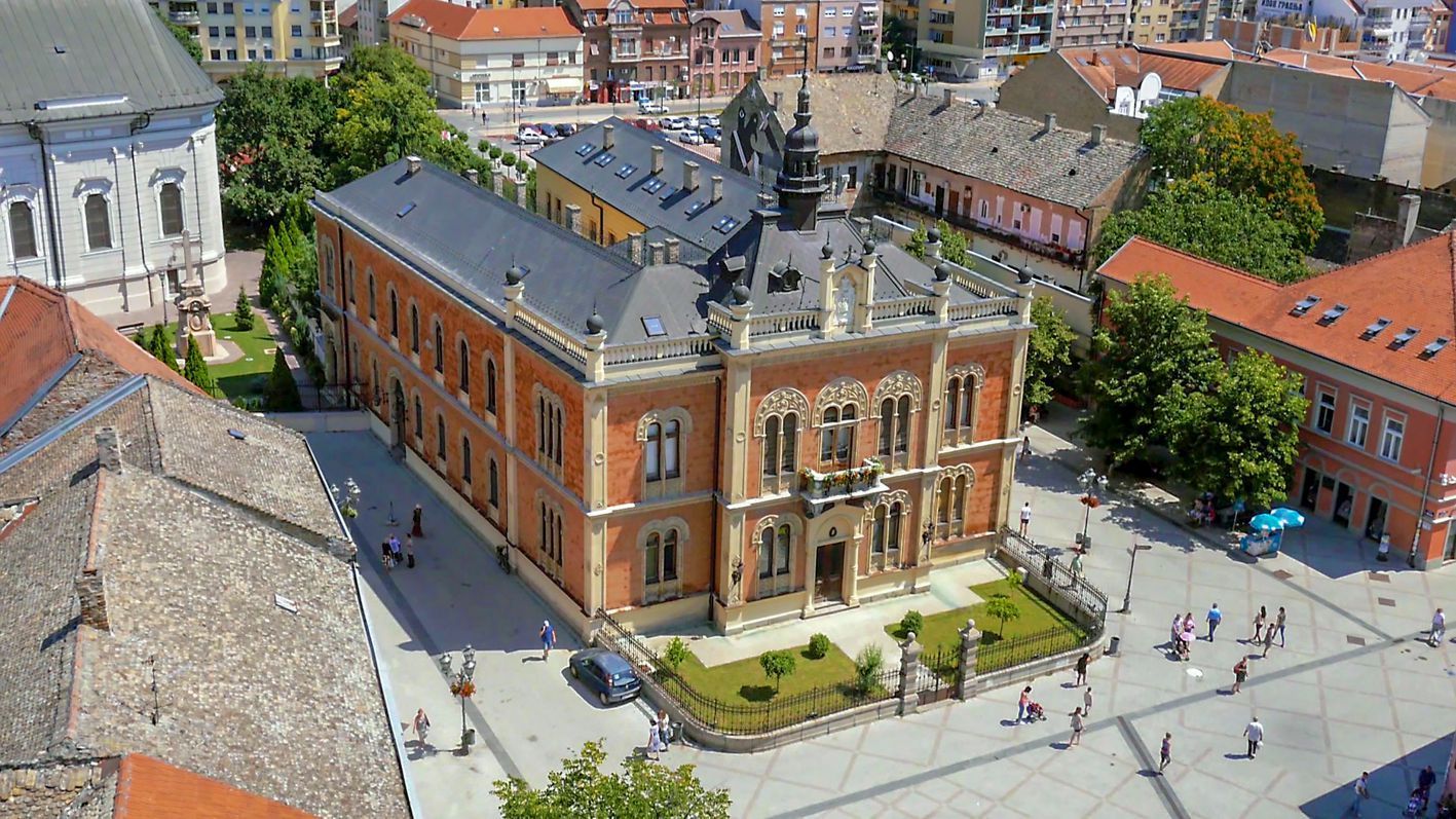 Православный епископский дворец всегда находился на перекрестке улиц Змай-Йовина и Дунавская, рядом с Сербской православной соборной церковью, посвященной Святому Георгию. Старый дворец был построен в 1741 году усилиями епископа Визариона Павловича и полностью разрушен в 1849 году во время бомбежек из Петроварадинской крепости. Проект нового здания был разработан архитектором Владимиром Николичем в 1899 году, а строительство было завершено в 1901 году. Епископский дворец - замечательное и представительное здание в стиле эклектики, в котором сочетаются романтизм и сецессион. Заметное впечатление создают украшения фасада, а также бифоры и трифоры. Это впечатление усиливает использование красного кирпича, которым облицовано здание. На фасаде также изображен вестник епископства. Внутри здания эффектная лестница с кованым забором и незабываемые фрески и иконы в столовой, расписанные Владимиром Предоевичем. Во дворце находится часовня, иконостас в которой расписал Владимир Курокин. В 1919 году во время своего визита в Нови-Сад князь-регент Александр Караджорджевич обратился к народу с балкона Епископского дворца.