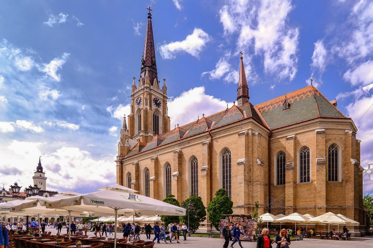 Римско-католическая приходская церковь имени Марии (также известная как Кафедральный собор) построена в неоготическом стиле в период с 1893 года. На площади Свободы она занимает значительное место, именно там, где вначале были старые церкви 18 века. Во время бунта (1849 г.) церковь загорелась, а после конфликта католическая община начала восстановление. В 1864 году эта церковь стала постоянным собором. К концу 19 века католическая община Нови-Сада решила построить новую представительную церковь. В 1891 году старая католическая церковь была разрушена, и началась кладка нового кирпича по проекту «baumeister» Георга Мольнара. Он построил трехнефную базилику со шпилем высотой 73 метра, что делает ее самой высокой церковью в городе. Внутри четыре алтаря, главный украшен тирольскими гравюрами. В окна встроены витражи из Будапешта, которые олицетворяют библейские мотивы, а также герольды известных католических семей из Нови-Сада. Эта церковь также служит концертным залом, особенно для органных концертов, так как есть один, датируемый 1895 годом. После пожара 1904 года церковь обновили; кровлю украшали шестиугольные эмалированные плиты. Бюст Георга Мольнара помещен в нишу под хором. Последняя реконструкция подчеркивает желтый кирпич, из которого была построена церковь, но с помощью особого света, который освещает стены и делает его самым узнаваемым зданием в Нови-Саде.