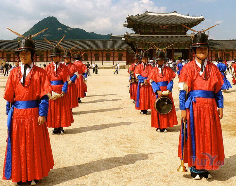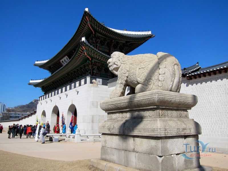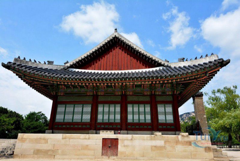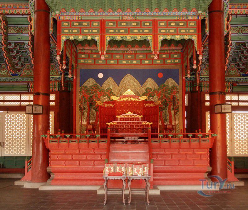 Главная королевская резиденция династии Чосон - Дворец Кёнбоккун (Дворец Кёнбок) является крупнейшим и самым роскошным дворцом из "Пяти Великих дворцов" Сеула. Он расположен в северной части столицы Южной Кореи, занимает территорию площадью 40 гектаров. Кёнбоккун (что в переводе с корейского означает "дворец лучезарного счастья") был построен в 1395 году, спустя 3 года после вступления на престол короля Тхэчжо - основателя династии Чосон. При последующих правителях дворец постоянно достраивался и расширялся, и к XVI веку превратился в огромный дворцовый комплекс. Во время Имчжинской войны 1592-1598 годов дворец Кёнбок был разрушен и сожжён японскими войсками и более чем два с половиной столетия оставался заброшенным. Восстановлен Кёнбоккун был в 1867 году, во время правления короля Коджона. Практически заново были построены около 500 зданий (большие и малые дворцы, правительственные здания, павильоны, беседки, пруды и сады для отдыха), в архитектуре дворцовых зданий были гармонично объединены традиции зодчества Кореи и древнего Китая. Во дворец вернулась королевская семья, и вплоть до 1895 года Кёнбоккун снова считался главной резиденцией династии Чосон. В 1895 году во дворце произошла трагедия - 8 октября 1895 года в Кёнбоккун ворвались японские наёмники, которые зверски убили королеву Мин в её собственных покоях на глазах у придворных дам и слуг. Жестокое убийство было совершено по приказу японского посланника в Корее Миура Горо, целью заговора было устранение неугодной японскому правительству королевы - сторонницы пророссийской политики Кореи. После смерти жены король Коджон покинул дворец, и больше императорская семья в Кёнбоккун не возвращалась. В 1910 году Корея стала японской колонией, дворец Кёнбок (символ королевской власти династии Чосон) был снова разрушен почти до основания. Под предлогом проведения на территории дворца выставки, около 90% всех сооружений были снесены или демонтированы, уцелели лишь 10 зданий дворцового комплекса, в которых позже была размещена резиденция японского генерал-губернатора. Восстановление дворца Кёнбок было начато в 1990 году, полностью реконструированы императорский тронный зал Кынджонджон и павильон Кёнхверу, возведенный на 48 гранитных колоннах посреди искусственного озера. Главные дворцовые ворота Кванхвамун "вернулись" на своё исходное место (они были демонтированы и перенесены японцами в восточную часть дворца), отстроены в своём первоначальном виде Королевские жилые помещения и Восточной дворец кронпринца. Тронный зал Кынджонджон и павильон Кёнхверу объявлены Национальными сокровищами Южной Кореи. Сегодня дворец Кёнбоккун открыт для посещений, на его территории находятся Национальный фольклорный музей и Национальный дворцовый музей. На дворцовой площади, у главных ворот Кванхвамун, каждый час, с 10:00 до 15:00, проходит смена королевского караула - стражники в ярких национальных костюмах полностью повторяют церемонию, которая проводилась во времена династии Чосон. В ходе восстановительных работ, проводимых с 1990 по 2009 год, были полностью реконструированы 40% строений королевского дворца Кёнбоккун, с 2009 года начат следующий этап работ, рассчитанный на 20 лет. Проект предусматривает полное восстановление дворца Кёнбок в своём былом великолепии.