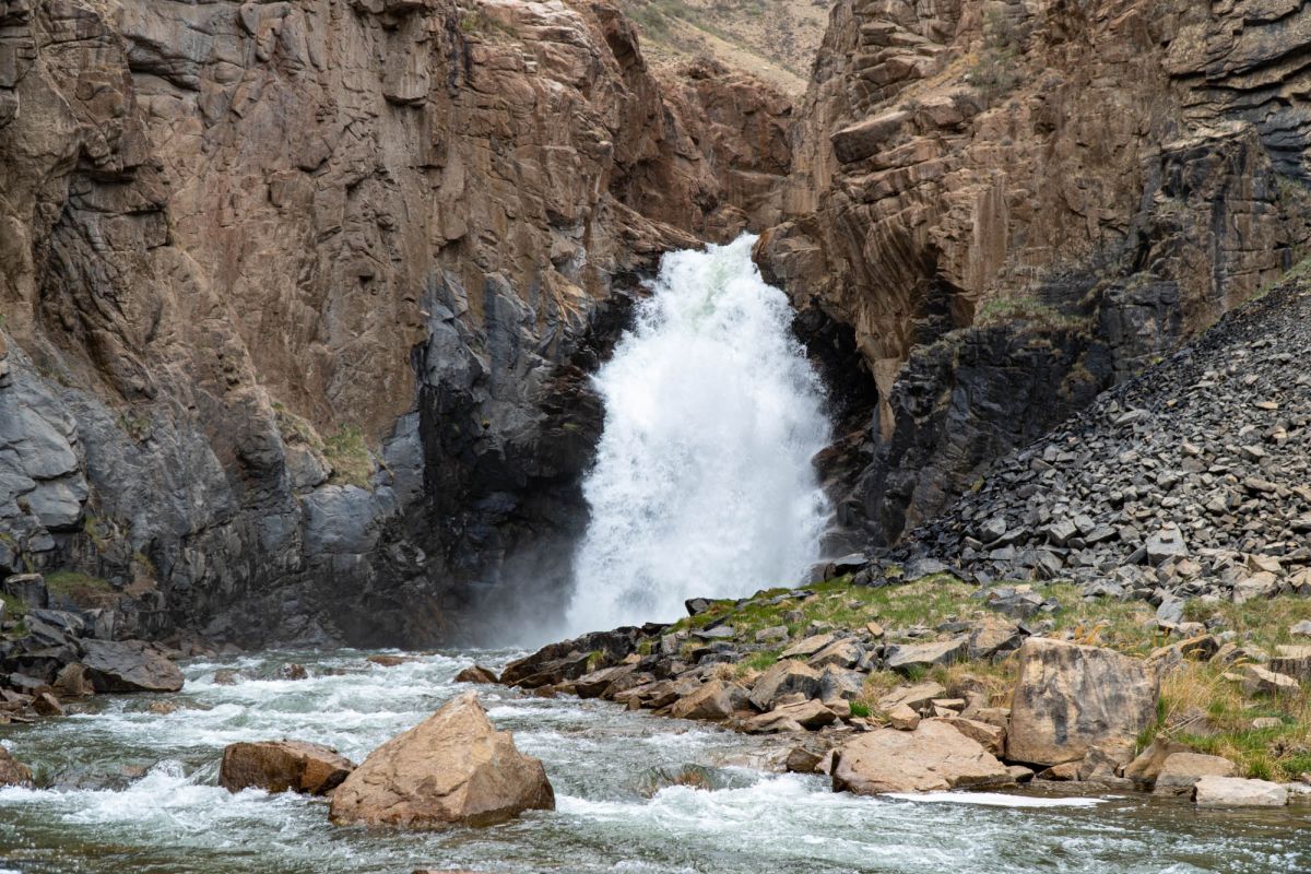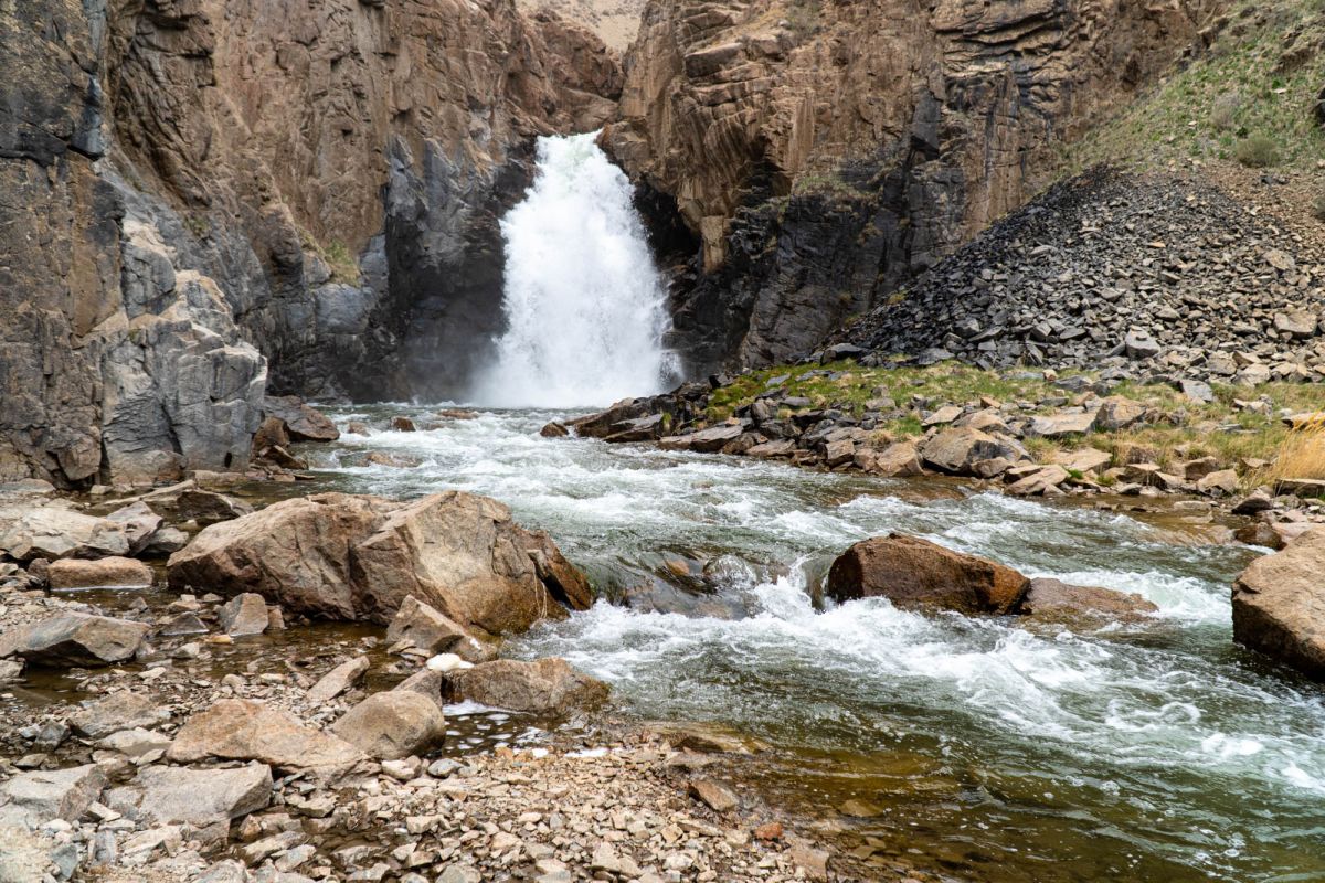 Водопад Кажерты расположен в Нарынской области, его высота составляет 25-30 метров. Это популярное место у туристов, путешествующих на озеро Сон-Кёль через перевал 38 попугаев. Мощный поток водопада срывается из тесного ущелья между скалами, образующего ниже по течению живописный коньон. До водопада можно добраться следуя вверх по течению шумной каменистой речки. По пути встречаются эндемичные виды высокогорных цветов и растений. Эта местность довольно безлюдная, так что здесь можно насладиться прекрасными видами, которые дарует Кажерты и красотой окружающей природы в тишине и спокойствии. Ближайшее поселение к водопаду называется Эки-Нарын.