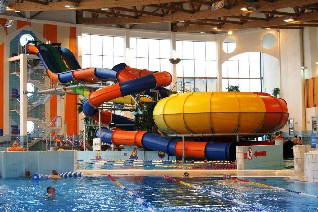 Водное безумие в одном из крупнейших объектов такого типа в Европе. Детей (и не только) ожидают четыре горки, стенка для скалолазания, бурная река, четыре внешние горки. Можно воспользоваться гидромассажем, водным торнадо, джакузи, а также плавательными дорожками.