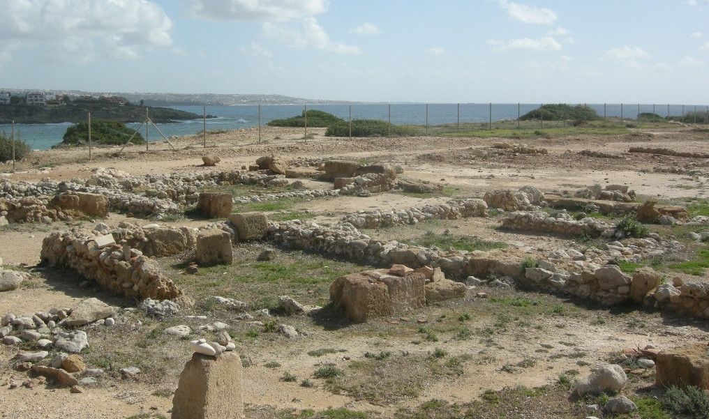 Высадка микенцев на здешние берега произошла предположительно около 1200 года до нашей эры. У полуострова было отличное для тех времен местоположение, идеально подходящее для постройки укрепленного города. По обеим его сторонам расположены песчаные гавани, недалеко есть источник пресной воды Вризи тис Маас, со стороны заливов его склоны неприступны, а узкий перешеек между большой землей и полуостровом легко мог быть закрыт мощной стеной.