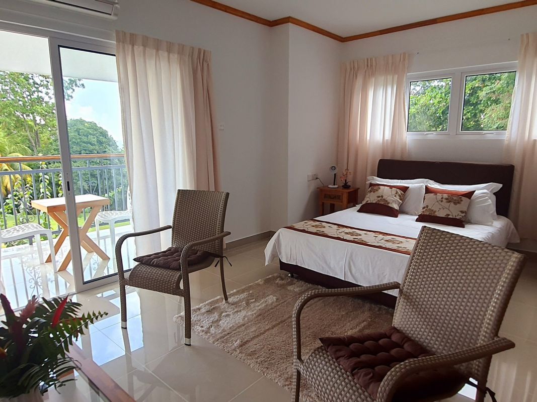 Le Chant de Merle - это заведение с самообслуживанием. Он имеет 2 квартиры-студии и 2 квартиры с 1 спальней. Все 4 просторных номера полностью меблированы и оснащены мини-кухней, телевизором с плоским экраном и бесплатным Wi-Fi. Он расположен на высоте 30 метров над уровнем моря, в тихом районе с прекрасным садом. Расположенный на первом этаже семейного дома, где потрясающий вид на океан, Силуэт и Северный остров вызывает восхищение. Захватывающие дух оттенки заката - настоящее чудо. Отель также находится в 50 шагах от небольшого водопада на реке Бамбук, который идеально подходит для восстановления сил. Хозяин также живет в отеле, чтобы помочь вам провести прекрасный отпуск и организовать ваши мероприятия. Отель Le Chant de Merle находится в 3 минутах ходьбы от пляжа Бель-Омбре и в 2 минутах езды от Бо Валлон, где расположены пляж, рестораны, магазины и банкоматы.