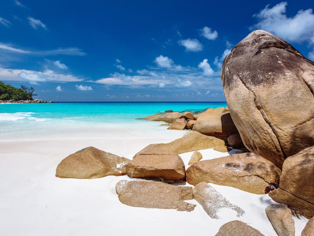 Анс-Жоржетт: этот пляж, широко известный как один из самых красивых на Сейшельских островах, находится на западном побережье острова Праслен. Курорт Constance Lemuria расположен между дорогой и пляжем. У Анс-Жоржетт есть прекрасный песчаный пляж, окаймленный пышной растительностью, обрамленный гранитными валунами и бирюзовыми водами, он обеспечивает мягкий песок и великолепное плавание.