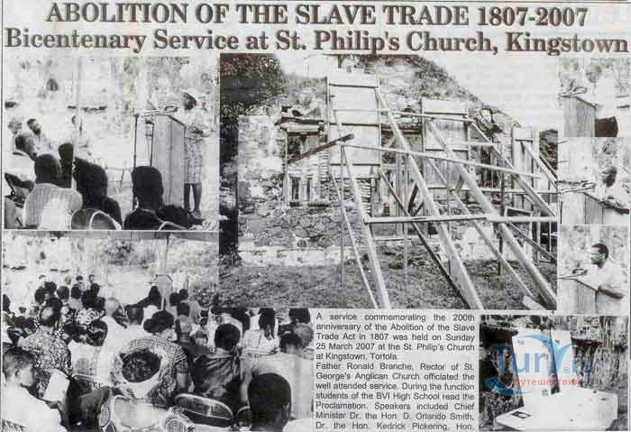 Старинная церковь Сент Филипс имеет интересную историю. В 1819 году португальский корабль "Донна Паула" угодил в коварное течение на рифе Анегада и потерпел крушение. Более двухсот человек команды и рабов были спасены проходившими мимо судами "Элизабет и Ханна" и "Байя". Однако разместить всех рабов тогда не представлялось возможным, и возникла проблема их перемещения. В конце концов было принято решение разместить всех невольников на острове Тортола, который в начале 19 века был совершенно диким и необитаемым. Все рабы с потерпевшего крушение "Донна Паула" получили небольшие наделы земли с условием создать на острове поселение и плантации. Сегодня это место известно как город Кингстон на Тортоле. Большинство рабов приняли религию команды корабля – христианство. И после обустройства на острове была построена первая христианская часовня - храм Сент Филипс, окрещенный в честь Святого Филлипа.