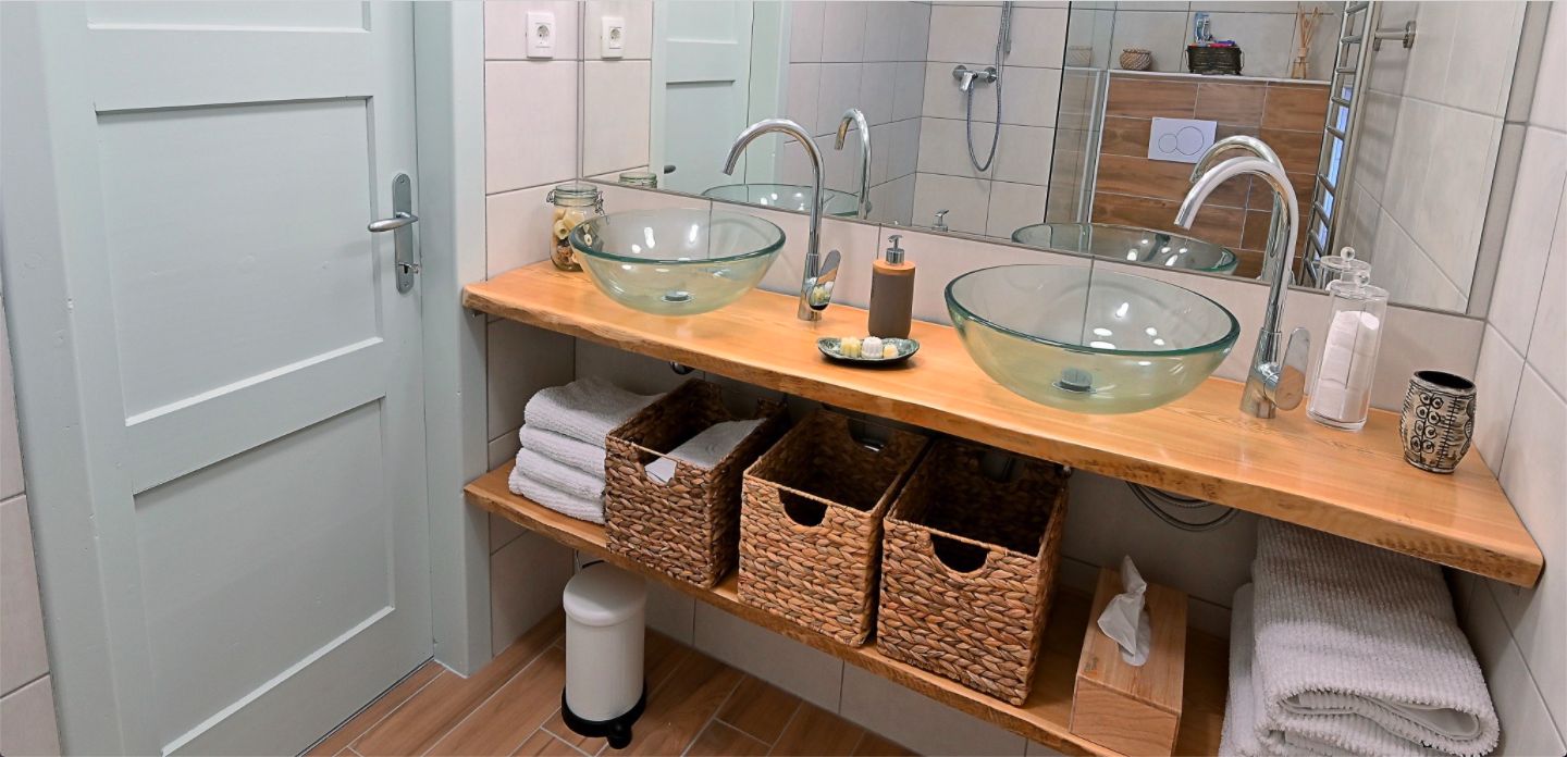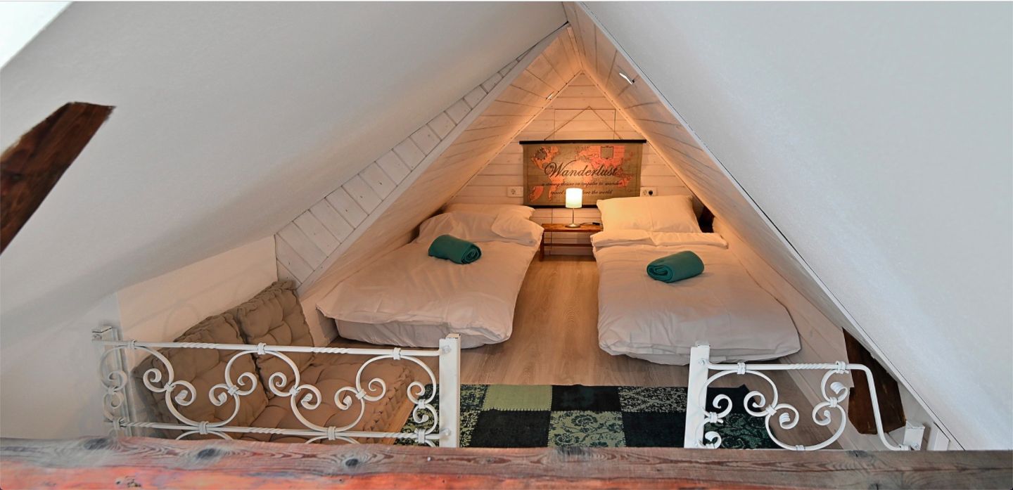 Микнек 1 квартира вмещает макс. 6 человек, имеет спальню с двуспальной кроватью, полностью оборудованную кухню со стиральной машиной, гостиную с раскладным диваном и спальню в мансарде с двумя кроватями. В ванной комнате есть душ и туалет. Один туалет отдельный. На террасе есть шезлонги, зона отдыха, а также деревянная горячая ванна и гриль. В гараже предусмотрено место для хранения спортивного инвентаря и велосипедов. Гости также могут воспользоваться сушильной машиной.