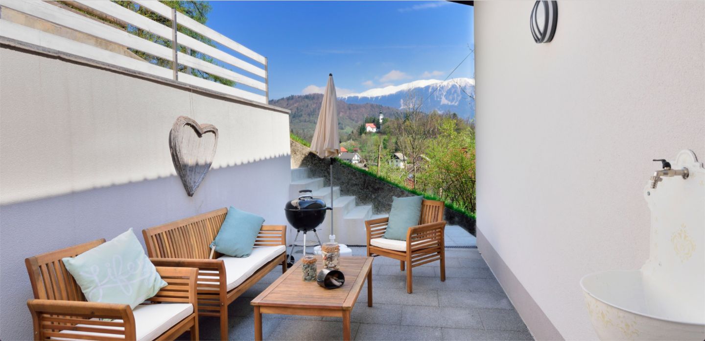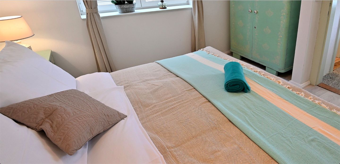 Квартира на первом этаже вмещает макс. 5 человек, имеет две спальни, полностью оборудованную кухню, гостиную с раскладным диваном, ванную комнату с душем и туалетом. В квартире также есть стиральная машина. На террасе есть шезлонги, зона отдыха и гриль.