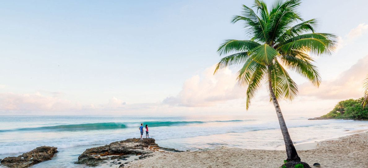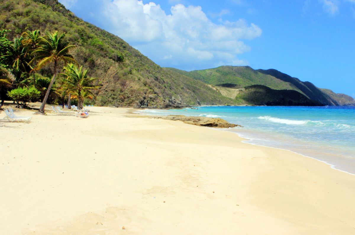 Пляж Дэвис Бэй Бич расположен на северо-западной стороне острова Санта-Крус, около отеля Карамбола Резорт. Он доступен не только для гостей отеля, но и для всех желающих. Длинный пляж с белым песком с одной стороны соседствует с бирюзовыми водами, а с другой стороны окружен горами с растущими на их склонах деревьями, среди деревьев в некоторых местах подвешены гамаки для отдыха.