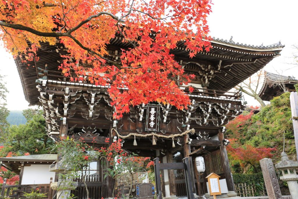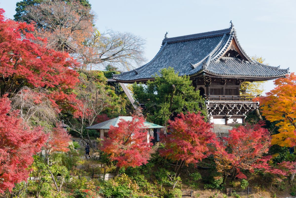Храм Ёсиминэ-дэра, расположенный в Нисикё-ку, Киото, является буддийским храмом Тендай и 20-м храмом паломничества Сайгоку Каннон. Говорят, что Храм был построен знаменитым монахом Генсаном в 1029 году со статуей тысячерукого Каннона, или бодхисаттвы, известной как Авалокитешвара, в качестве главной статуи. Когда-то храм состоял из 52 зданий, но большинство из них сгорело во время Онинской войны (1467–1477). После войны храм был восстановлен Кэйсойн, матерью Цунаёси Токугава, пятого сёгуна Токугава, и теперь включает около 20 храмов, включая «Тахото», который признан важным культурным достоянием страны.