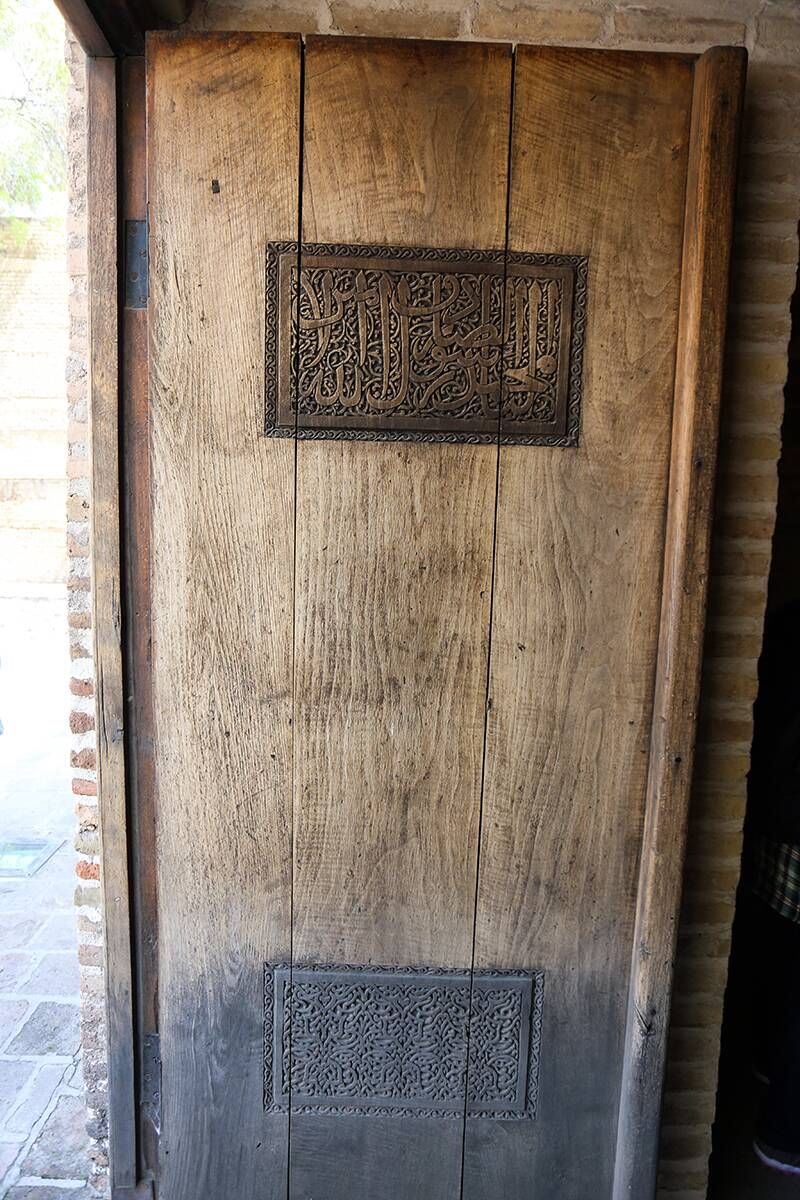 Одной из других особенностей этого ценного здания является использование Ше-Конджа или Филпуша, чья задача состоит в том, чтобы наклонить здание, а умелые иранские архитекторы преобразовали квадратный план в восьмиугольник, с шестнадцатью сторонами и тридцатью двумя сторонами и, наконец, в круг, чтобы построить здание конической или купольной формы. В этом здании есть две двери из орехового дерева, на одной из них виден аят Корана, а на другой - сура Инсана. Это не главные двери здания, но оригинальные двери были заменены ими около восьмидесяти лет назад. Одна из оригинальных дверей сгорела в огне, а другая хранится в Национальном музее Ирана.
