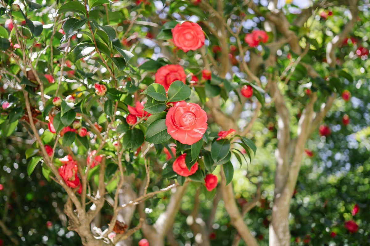 Этому дереву камелии, спрятанному в конце лесной дороги в Йосано, около 1000 лет, что делает его одним из старейших в мире. Дерево имеет высоту 9,7 метра и обхват 3,26 метра. Особенностью этого дерева, в частности, являются его темно-малиновые цветы, которые намного темнее, чем у большинства красных деревьев камелии.