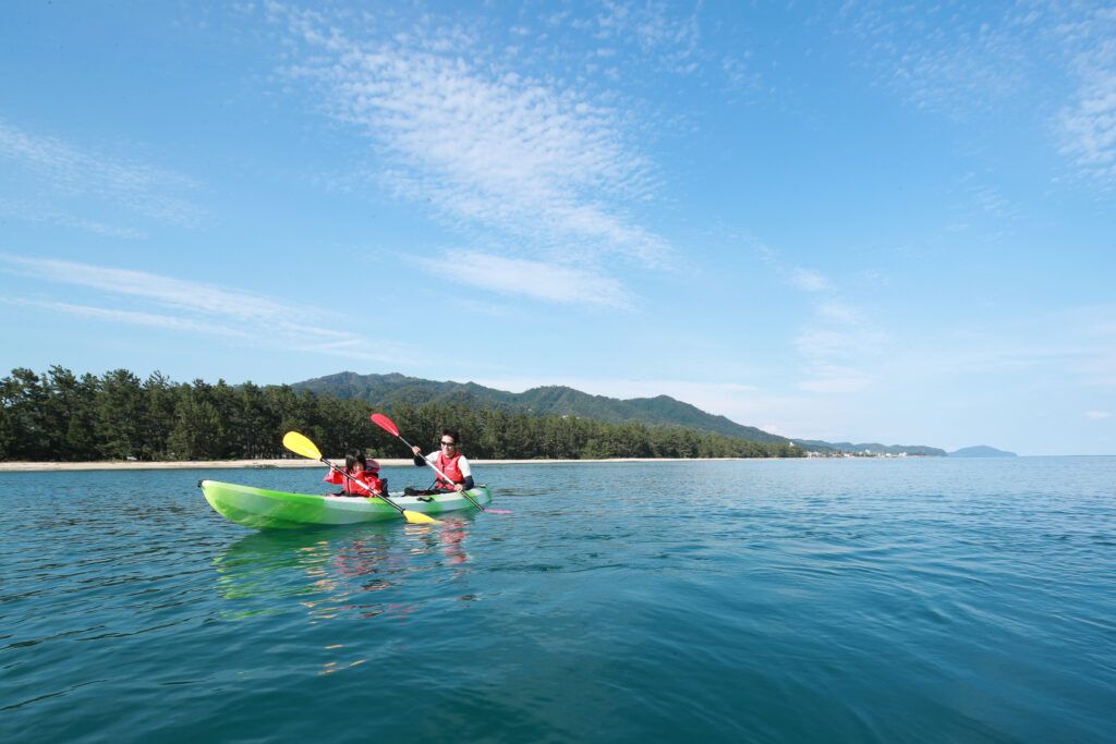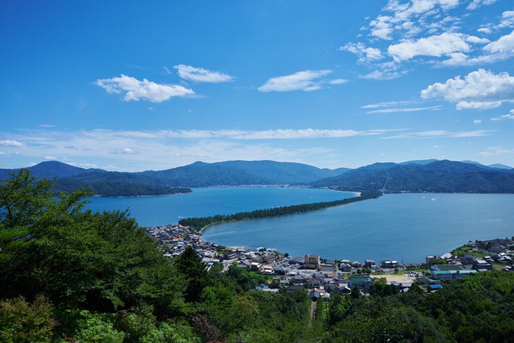 Аманохасидатэ входит в тройку самых известных видов Японии. Этот естественный наземный мост описан в легенде как созданный божеством Идзанаги-но-микото как тропа с небес к божеству Идзанами-но-микото. Аманохасидатэ - это естественное произведение искусства, созданное Японским морем и рекой Нода, вытекающей из ее истока на горе Оэ. Загадочная красота, белый песок и зеленые сосны открывают поистине великолепный вид. Около 8000 сосен растут на песке около 3,6-километрового моста.