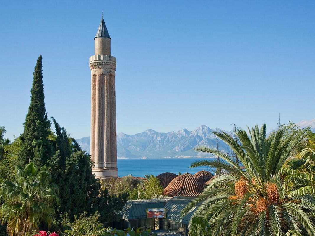 Минарет Йивли в Анталье был построен в 1230 году сельджукским султаном Ала-ад-дин-Кей-Кубадом. Это один из самых ранних образцов исламской культуры в Анталье. Минарет виден практически из любой точки города и с давних пор является символом города Антальи. Располагается минарет на выполненном из камня фундаменте квадратного сечения. Его высота составляет шесть с половиной метров в высоту. Его верхние углы срезаны, что делает сечение башни в самой верхней точке фундамента восьмиугольным. В нишах башни сохранились уникальные по своему историческому значению остатки от мозаики из бирюзы и кобальтового стекла. Возвышающийся над городом минарет венчает коническая крыша крытая свинцом.