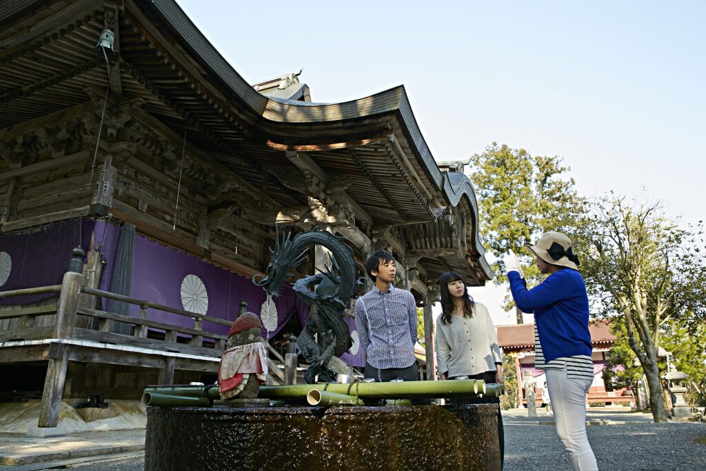Храм Нариай-дзи расположен на склоне горы с видом на Аманохасидатэ, который считается одним из трех самых живописных мест в Японии. К храму идет бесконечная очередь посетителей, так как это 28-й храм паломничества Сайгоку Каннон.