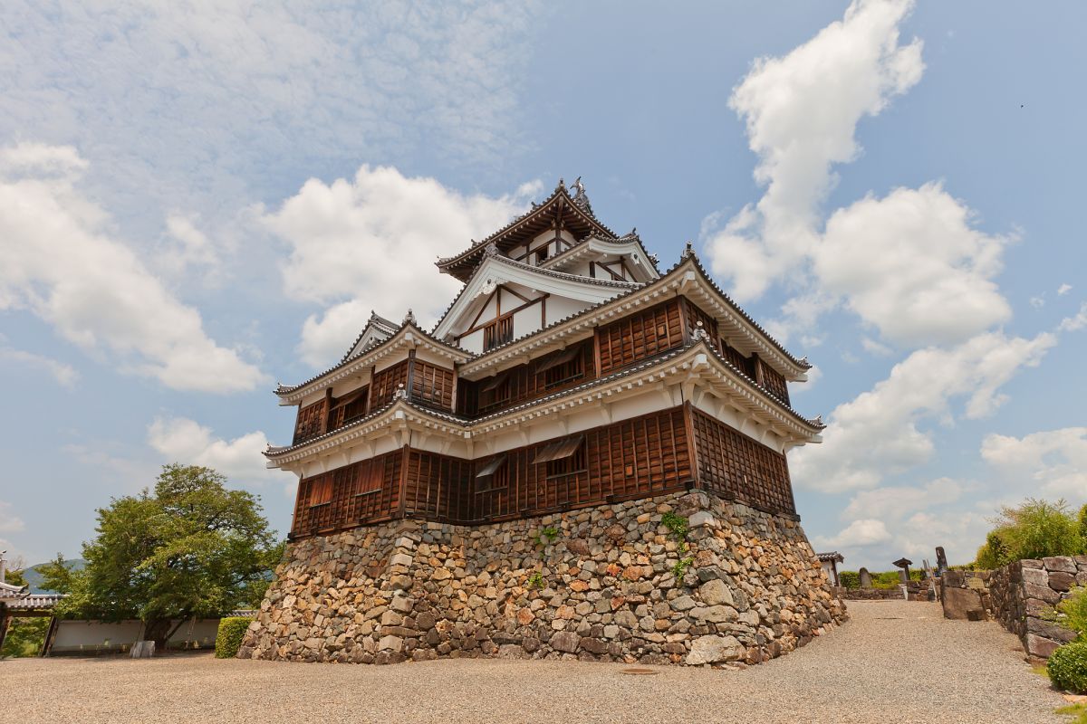 Перед замком Фукучияма был замок Ёкояма, крепость Ёкояма, принадлежащая местной правящей семье. Акэти Мицухидэ, самурай, покоривший Тамбу, перестроил крепость, используя самые современные методы строительства замков того времени, и переименовал ее в замок Фукучияма. Раньше здесь было много построек, в том числе трехуровневая четырехэтажная замковая башня и обширный дворец Ниномару. Однако они были снесены один за другим после упразднения феодальных владений в 1871 году. Все, что осталось, - это каменная стена между поднятым фундаментом и крепостью, колодец, называемый Тоойва-но-И, и сторожевой пост. Замок, который стоит сейчас, реконструировался в течение трех лет, и строительство было завершено в 1986 году. Интерьер используется как Народный музей города Фукучияма. В замковом парке также находится Мемориальный художественный музей Фукучияма Сато Тайсэй. Здесь представлены работы покойного мастера японской живописи Сато Тайсэя.