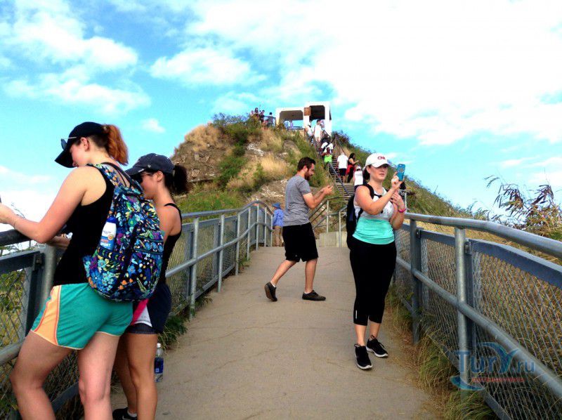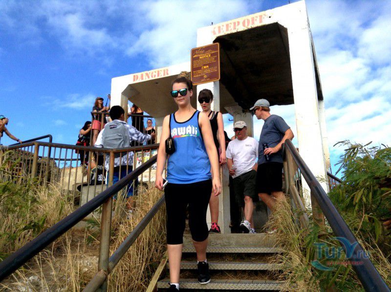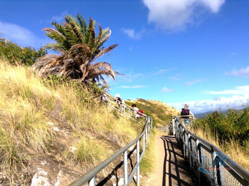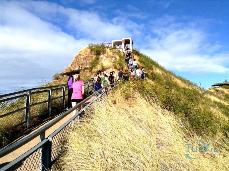 Тропа на вершину вулкана Lē'ahi была проложена в 1908 году как часть системы береговой обороны острова Оаху. Восхождение на гору идет вдоль хребта по змееобразному серпантину, далее внутри горы прорыт тоннель, пройдя через который, можно подняться по крутой лестнице в пульт управления огнем, который построен на вершине в 1911 году для защиты острова. Здесь же размещены бункеры и огромный навигационный маяк, построенный в 1917 году.