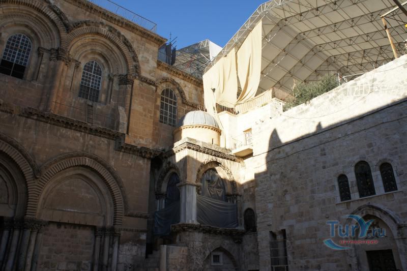 Храм Гроба Господня (Храм Воскресения Христова) расположен в Старом городе Иерусалима, в самом центре Христианского квартала. Он возведен на том месте, где, согласно Священному Писанию, был распят, погребён, а затем воскрес Иисус Христос. Начиная с IV века нашей эры, Храм Воскресения Христова является местом паломничества для христиан всего мира. Согласно Новому Завету, Иисус был распят в Голгофе (дословно - "место черепов") - районе заброшенных каменных карьеров, расположенном в то время за пределами городских стен Иерусалима. Спустя 10 лет после распятия Христа была построена третья стена, которая оградила площадь казни и захоронения Иисуса Христа. В 70 году нашей эры римский император Тит полностью разрушил Иерусалим, а во II веке, при императоре Адриане, на его месте началось строительство нового римского города Элия Капитолина. По указу Адриана над пещерой Гроба Господня, чтобы навсегда скрыть место захоронения Иисуса Христа, был возведен языческий храм Венеры. В IV веке, во время правления императора Константина I, принявшего христианство, храм Венеры был разрушен, а на его месте заложена первая церковь Гроба Господня. Согласно легенде, Гроб Господень (гробница Иисуса Христа), Животворящий Крест, четыре гвоздя и титло INRI были обнаружены матерью Константина Великого, императрицей Еленой, совершавшей паломничество к месту казни Сына Божьего. Помимо Гроба Господня, в состав храмового комплекса вошли предполагаемое место Голгофы и место обретения Животворящего креста. В результате был построен монументальный комплекс зданий, состоявший из нескольких частей - круглого храма-мавзолея, названного Анастасис (в переводе с греческого - "Воскресение"), в центре которого был расположен Гроб Господень, базилика (Великая церковь), внутри которой была оборудована крипта, отмечающая место обретения Креста. Между Анастасисом и базиликой располагалось открытое пространство (перистиль), окружённое с четырёх сторон крытой колоннадой. Храм Воскресения Христова был освящён в присутствии императора Константина Великого 13 сентября 335 года. В 614 году Иерусалим был захвачен персидским царем Хосровом II, сооружения храма Гроба Господня были сильно повреждены, а Животворящий Крест похищен (только в 631 году византийский император Ираклий договорился о его возвращении и восстановил храм). В 1009 году халиф Аль-Хаким би-Амруллах развязал в Иерусалиме антихристианские погромы, в результате чего была полностью разрушена базилика. В ходе долгих переговоров между Фатимидским халифатом и Византийской империей в 1027-28 годах император Константин VIII выторговал у сына Аль-Хакима право на восстановление храма. Строительные работы продолжались и при Константине IX Мономахе, но до своего былого великолепия восстановленному храму было очень далеко. После захвата города крестоносцами в 1099 году Храм Гроба Господня был отстроен в романском стиле. В 1130-1147 годах был построен храм Воскресения, который вновь объединил под одной крышей все святые места, связанные со смертью и Воскресением Иисуса Христа. С тех пор Храм Гроба Господня ещё много раз перестраивался, достраивался и восстанавливался. Последняя масштабная реконструкция храма была проведена в 2016-2017 годах, в результате которой, в числе многих выполненных работ, с Кувуклии были убраны поддерживающие металличе