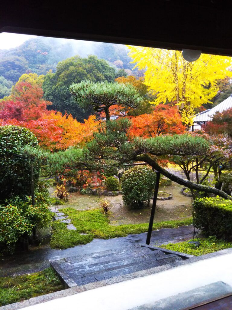Этот храм был основан монахом Гёкё, который, как говорят, перенес дух, отделившийся от храма Ивашимидзу Хатимангу, в этот храм. Посетители могут любоваться яркими осенними листьями на подходе к территории храма. Деревья гинкго также великолепны.