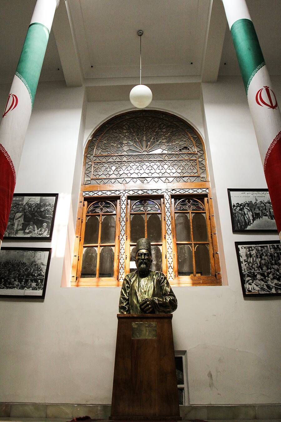 Исторические документы, конституционный ковер, статуи действующих лиц и моджахедов конституционной революции, таких как Саттар-хан, Бакер-хан и др., личные вещи конституционных лидеров, пистолет Саттар-хана, некоторые изображения Мозафаредин-шаха, Мохаммад-Али-шаха и конституционного группы противников, желатиновый печатный станок (ручная копия) – памятники этого музея.