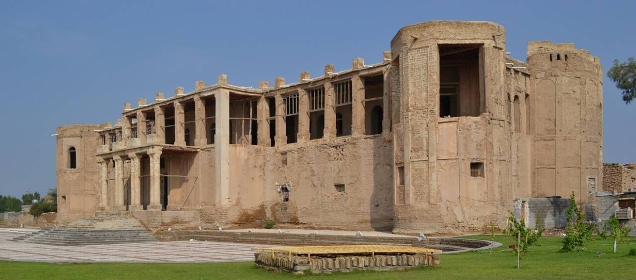 Здание расположено на участке площадью двадцать пять тысяч квадратных метров, а основание самого особняка представляет собой прямоугольник площадью четыре тысячи квадратных метров. Особняк имеет различные архитектурные части, такие как шахнешин (большая освещенная солнцем комната), айваны, множество залов, место для купания и очищения, множество комнат и башен. Наряду с местными материалами использовались сосна, красное сандаловое дерево и бомбейское черное дерево.