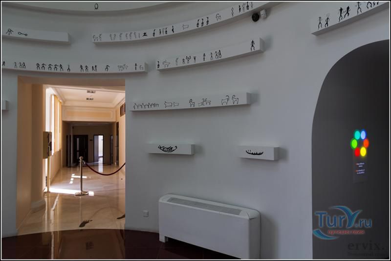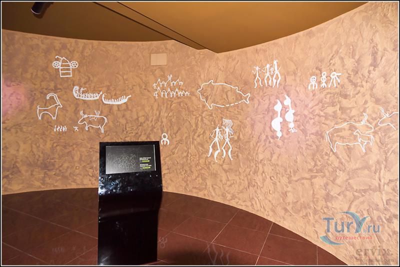 Музей двухуровневый, в фойе собраны все типичные образцы местных петроглифов. Практически во всех залах музея находится интерактивная панель, на которой туристы могут узнать дополнительную информацию по тематике зала.