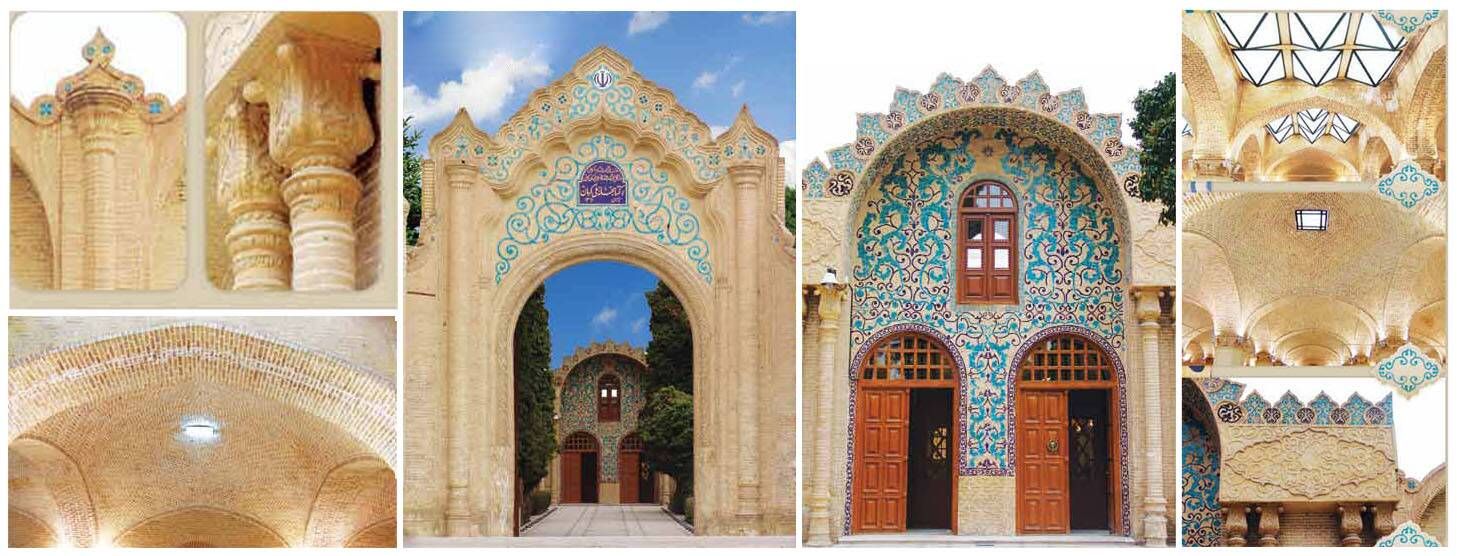 Здание расположено в саду вечнозеленых кедров. Входное крыльцо Национальной библиотеки Кермана — еще одна привлекательная часть этого здания, искусно украшенная плиткой и кирпичом. Посетив это здание, вы, вероятно, увидите некоторое сходство с Национальным садом Тегерана, что неспроста; архитектор обоих зданий один и тот же! Завораживающая плитка и кирпичная кладка Национальной библиотеки Кермана придали этому памятнику особый вид.