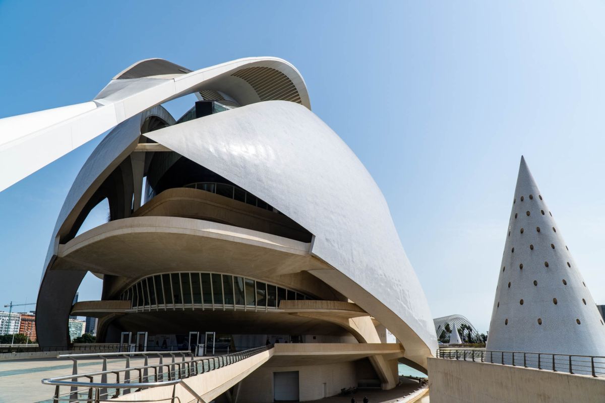 Это последнее и самое эффектное здание в Сьюдад-де-лас-Артес-и-лас-Сьенсиас (Город искусств и наук). Оно было задумано как всеобъемлющий культурный центр, где проходят оперы, танцы и концерты под открытым небом. Инновационная программа является последовательной, предлагая лучшие художественные события. Он предлагает глобальное видение, использующее музыку в качестве основы для других художественных и культурных дисциплин. El Palau de les Arts оснащен сценой площадью более 1500 м², где новейшие технологии, такие как переносные платформы, сменные декорации и синхронный перевод с помощью экранов, встроенных в сиденья, создают сцену для всех видов опер, мюзиклов и спектаклей.