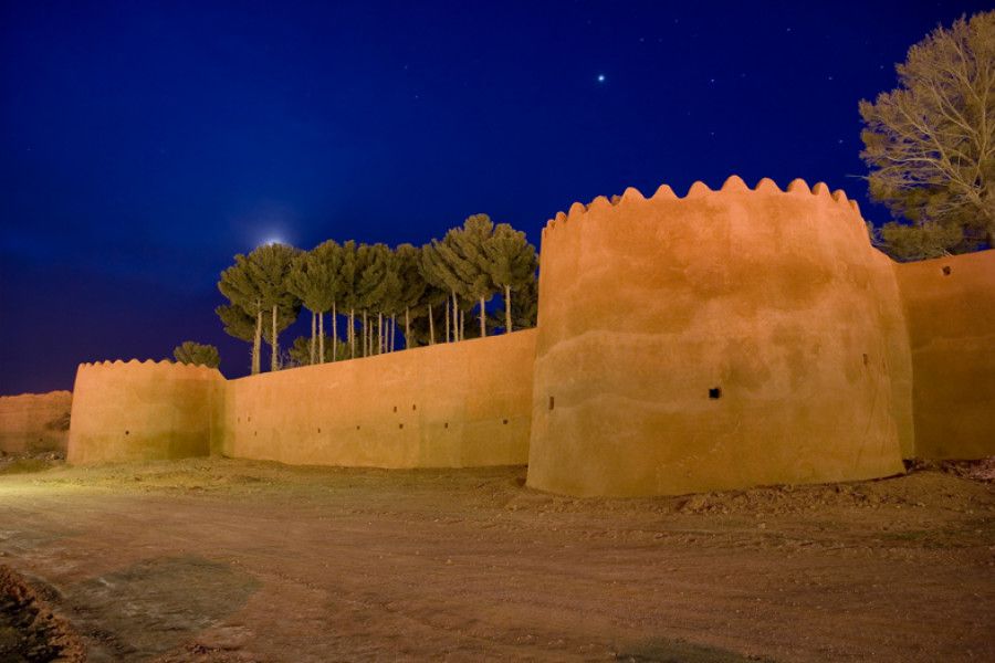 Этот форт и сад «Муд» расположен в городе Муд и на расстоянии 30 км от Бирджанда. Окрестности этого сада состоят из 20 круглых башен, расположенных на определенном расстоянии друг от друга, помимо башен есть ров шириной 1 метр, который окружает сооружение для защиты форта. Внутри форта можно найти старое формальное здание, включая веранды, остатки вестибюля, коридоры и комнаты. На стенах и арках можно найти исламские надписи и художественные росписи по штукатурке с использованием рисунков цветов, кустарников и птиц. В здании также можно найти декоративные арки и украшения. Древность этого форта относится к эпохе «занди». В центре сада он показывает характеристику архитектуры в конце эпохи «Каджаров» и в первые годы эпохи «Пехлеви». План сооружения состоит из многочисленных дверей, для легкого доступа в другое место. Перед зданием находится озеро. В саду две главные улицы, центральный корпус расположен на пересечении их пересечении. Основными породами деревьев сада являются сосна, осина и другие полезные деревья, такие как абрикос и барбарис. Окружение этого сада состоит из 20 круглых башен с определенным расстоянием между ними, в дополнение к башням есть ров шириной 1 метр, окружающий сооружение для защиты форта. Внутри форта можно найти старое формальное здание, включая веранды, остатки вестибюля и комнаты. На стенах и арках можно найти исламские надписи и художественные росписи по штукатурке с использованием рисунков цветов, кустарников и птиц. В здании также можно найти декоративные арки и украшения. Древность этого форта относится к эпохе «занди». В центре сада присутствуют характеристики архитектуры конца эпохи «Каджаров» и первых лет эпохи «Пехлеви».