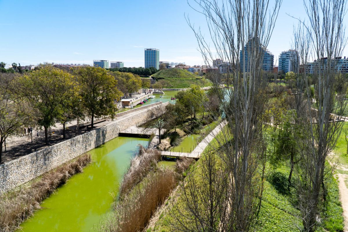 Парк занимает более километра территории бывшего русла реки Турия, в районе между окраиной города и окрестностями. Идея парка заключалась в том, чтобы превратить это пространство в прибрежный лес, типичный для окрестностей средиземноморских рек, сочетающий в себе растительность, рельеф и воду. Эта стратегия помогла разрешить переход между жесткими насыпями реки Турия, построенными в 18 веке для защиты города от внезапных наводнений, и естественным руслом реки вверх по течению. Вода, растительность, рельеф и сухие каменные стены — структурные особенности, на которых основана концепция парка.