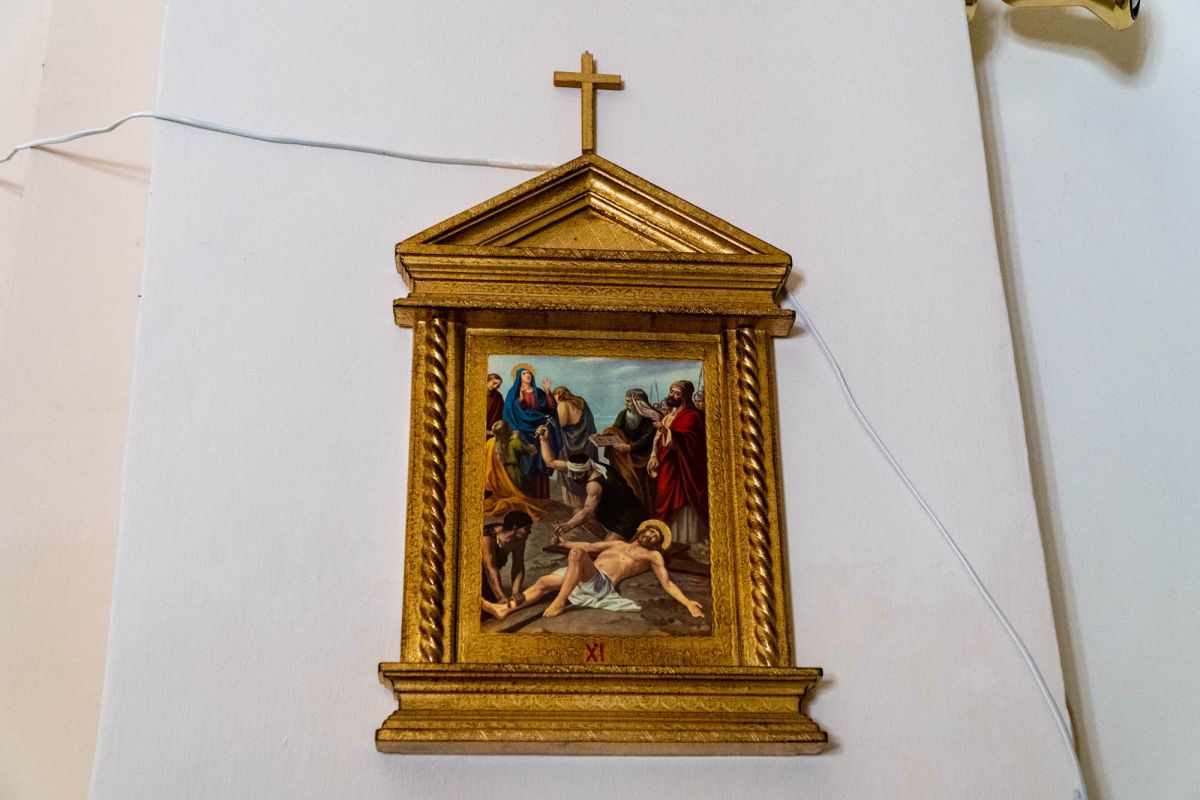 На последней картине пределлы, расположенной справа, под Распятием, изображен момент «успения» (термин, применяемый исключительно к Деве Марии в христианской традиции, чтобы отличить его от смерти, постигшей всех остальных смертных).