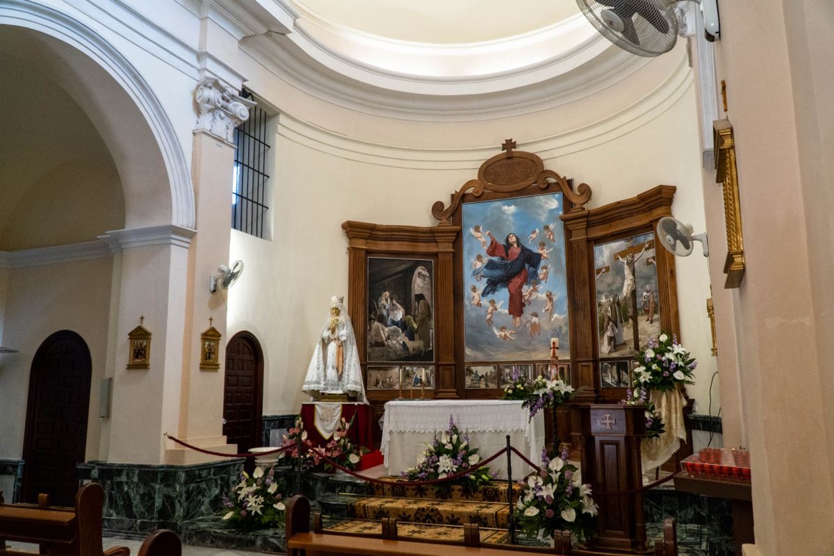 Старый запрестольный образ, разрушенный во время гражданской войны в Испании (1936 г.), имел своим центральным изображением скульптуру Успения, восходящего на небеса, в отличие от лежащего образа святого покровителя, почитаемого в Casa Orduña.