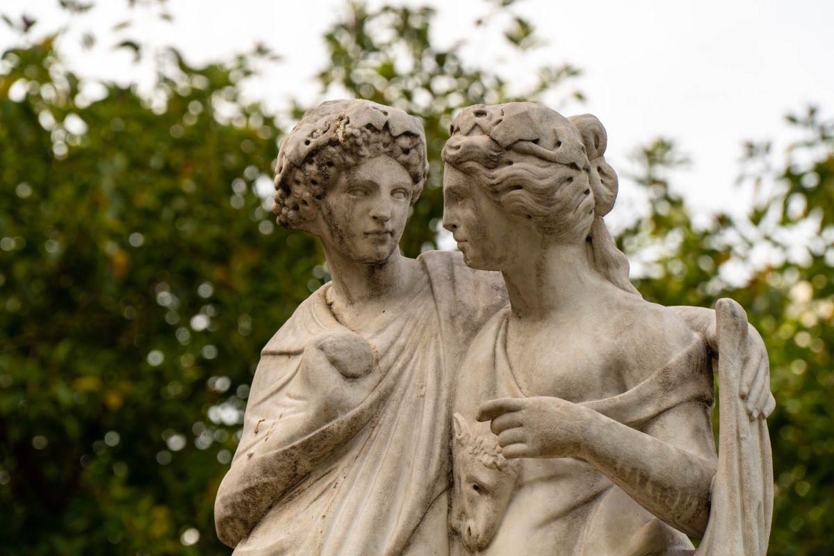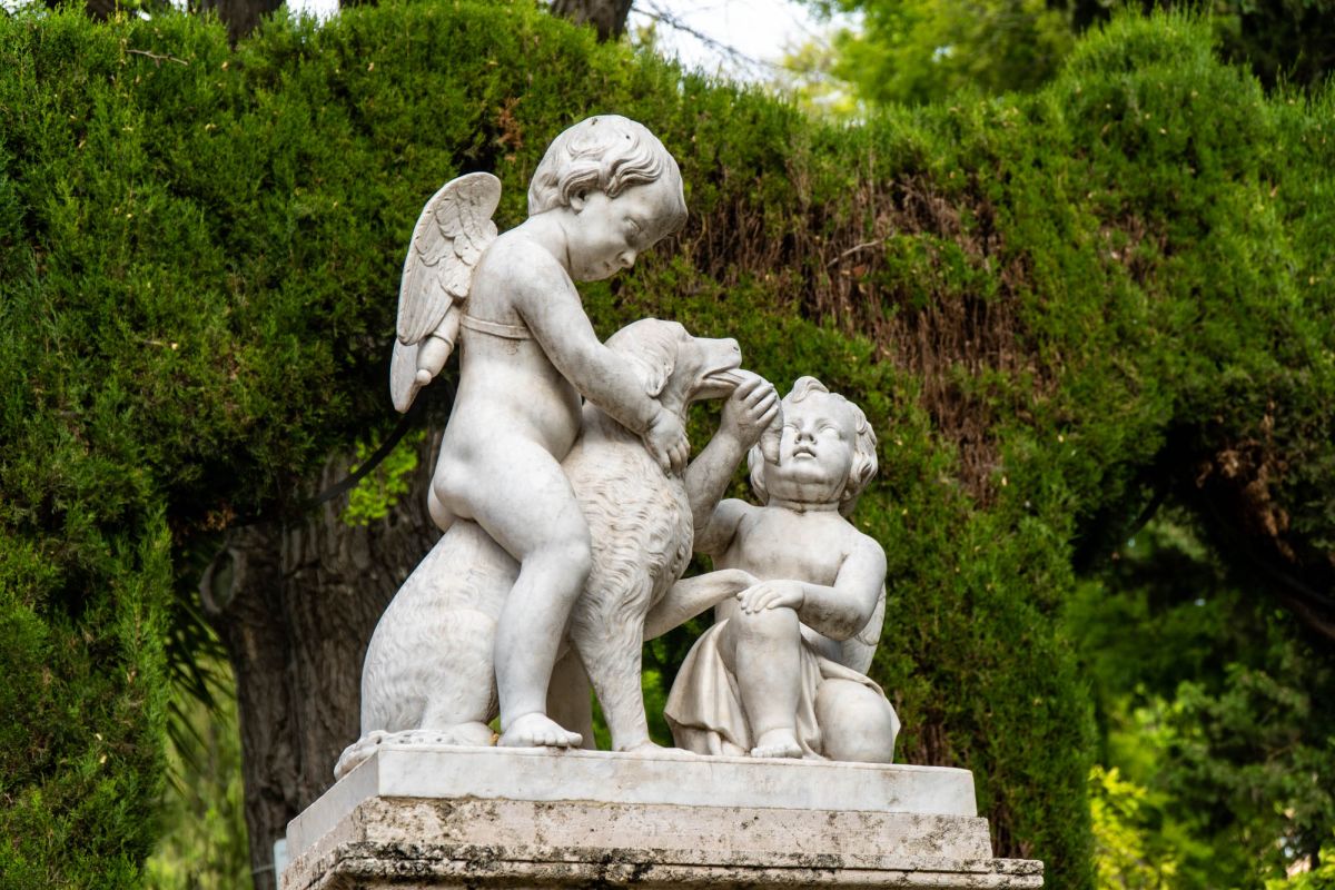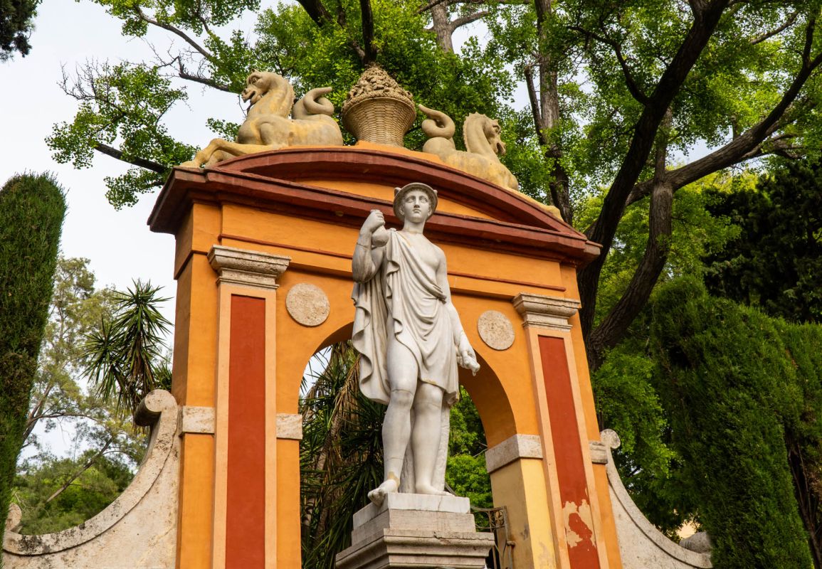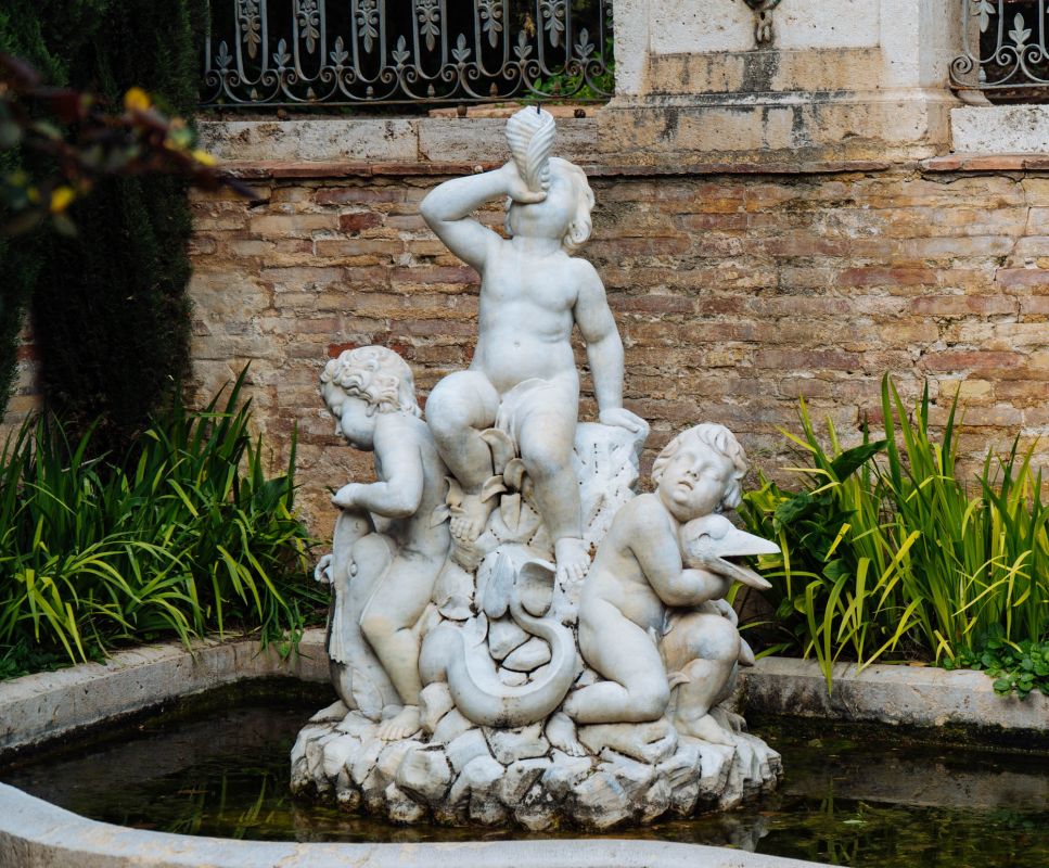 Неоклассический дизайн, полный статуй, прудов, фонтанов, дорожек и зон отдыха. Сады расположены в старом саду барона Льяури, который купил в 1849 году Хуан Баутиста Ромеро, маркиз Сан-Хуан, после чего поручил архитектору Себастьяну Монлеону Эстельесу создать сады.
