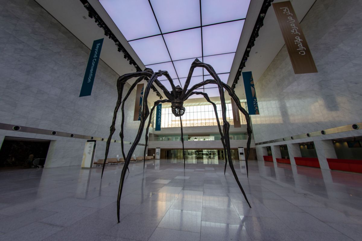 Гигантский паук, сделанный из мрамора, бронзы и нержавеющей стали, Maman от Луизы Буржуа исследует значение материнства и силы, и его можно найти в Национальном конференц-центре Катара.