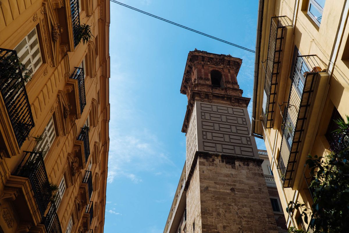 Храм, которому принадлежала башня, был построен в 17 веке, между 1666 и 1683 годами. Он заменил предыдущий, существование которого восходит к арагонскому завоеванию. Первоначально башня имела наклон, который был отремонтирован Хуаном Баутиста Пересом Кастиэлем. В начале Гражданской войны в Испании, в 1936 г., церковь была подожжена. Ее снесли в 1944 г. Снос начался с купола башни, и хотя остальная ее часть была спасена благодаря вмешательству Академии изящных искусств Сан-Карлоса, копулин не перестраивался.