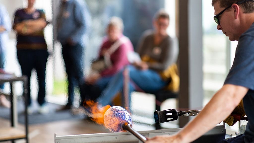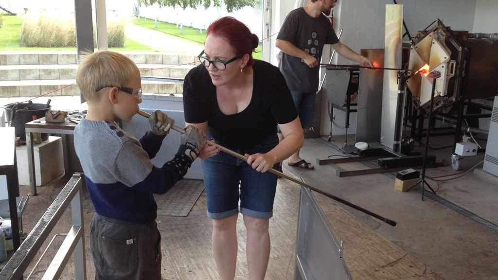 На территории музея находится мастерская горячего стекла. Студия работает с весны до осени, и посетители могут наблюдать за магией выдувания стекла, когда горячая сиропообразная масса превращается в красивые изделия из стекла. В летние месяцы для детей и взрослых организуется ряд мероприятий, таких как литье стекла, пескоструйная обработка и фьюзинг.
