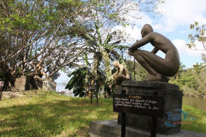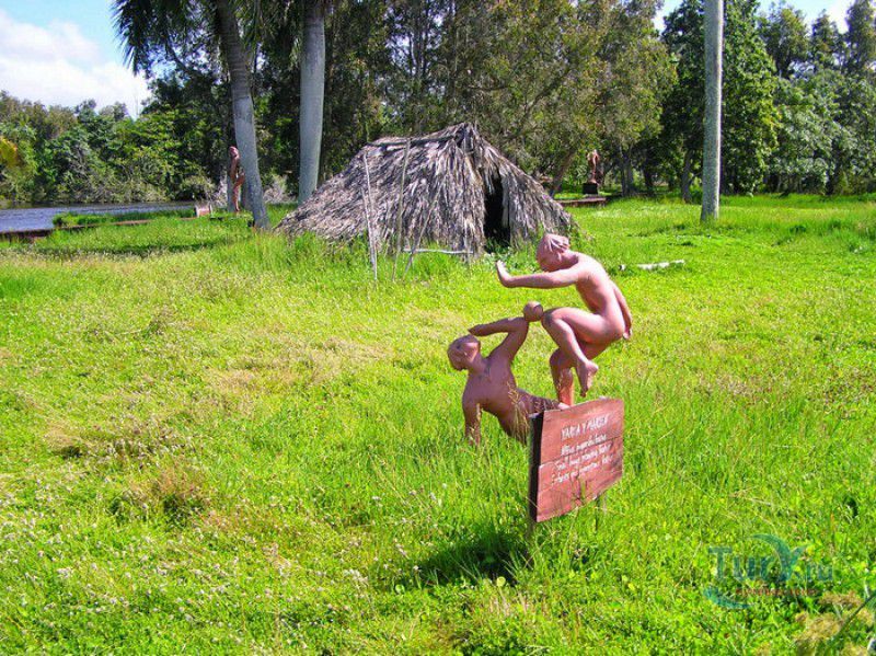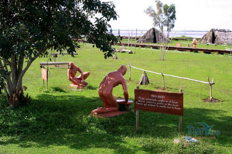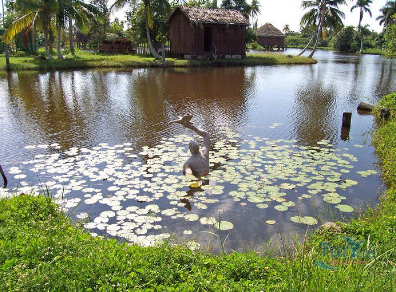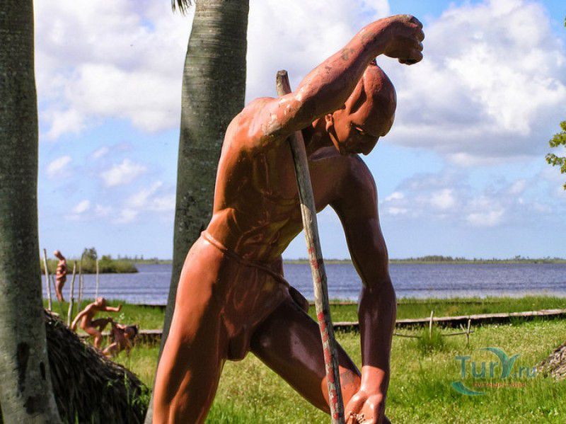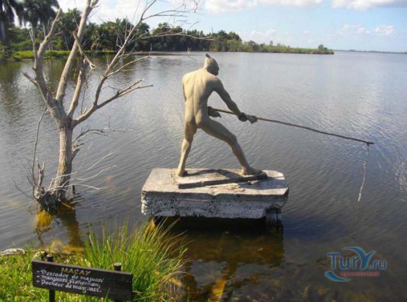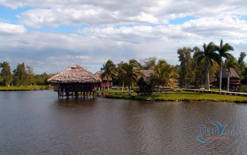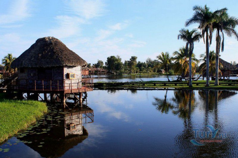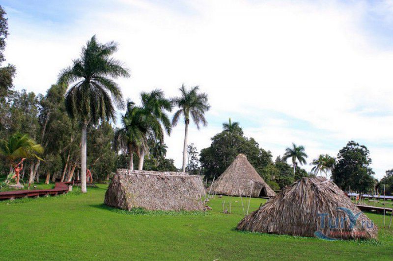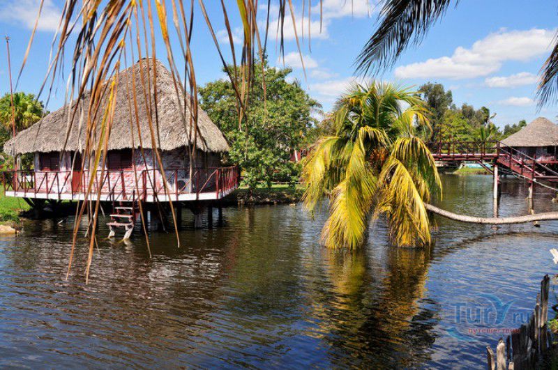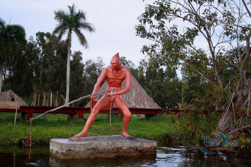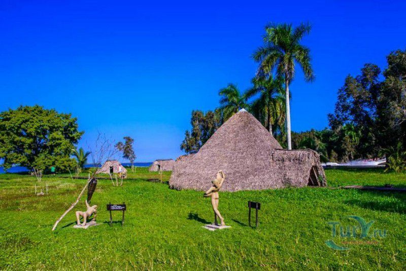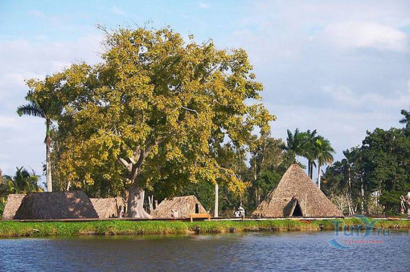 Индейская Деревня Гуама расположена на территории Национального парка Сапата (Parque Nacional Ciénaga de Zapata), на правом берегу озера Лагуна-дель-Тесоро. Индейцы из племени Таино жили в этих местах задолго до открытия Кубы Христофором Колумбом, аборигены занимались охотой, рыбной ловлей, возделывали землю. Строительство туристического курорта на озере Сокровищ (так называют Лагуну-дель-Тесоро), стилизованного под индейскую деревню, было инициировано кубинскими властями, работы контролировал сам Фидель Кастро. В создании курорта принимали участие архитекторы, историки, биологи, художники и строители из Гаваны и других городов страны. Были вырыты каналы, расчищены лагуна и протоки, через ручьи переброшены деревянные мостики, укреплены берега, высажены деревья и цветы, которые много веков назад росли в этих местах. В результате здесь была воссоздана самая настоящая индейская деревня, названная по имени вождя племени - Гуама. 44 индейские хижины на сваях построены из соломы и пальмовых листьев и со всех сторон окружены водой. Добраться в деревню можно только на лодке. Посетители, высадившись на берег, словно переносятся на несколько веков назад - здесь можно прогуляться среди индейских жилищ, заглянуть внутрь хижины и познакомиться с бытом аборигенов. Деревня "населена" индейцами Таино - по всей территории поселения расставлены глиняные статуи в натуральную величину, изображающие коренных жителей, занимающихся охотой, рыбной ловлей, добычей огня, приготовлением пищи и другими повседневными делами. На лужайке, рядом со скульптурами индейских женщин, готовящих еду, "резвятся" дети, здесь есть и воины, и охотники, и индейская старуха, и, даже, мечтатель. Автором композиции является известнейший кубинский скульптор Рита Лонга. На территории индейской деревни есть отель, ресторан, в котором можно отведать крокодильего мяса, сувенирный магазин и гончарная мастерская. Посетители могут стать зрителями костюмированных шоу, "современные Таино" готовы провести для гостей различные церемонии, среди которых посвящение в индейцев, общение с духами и свадебные обряды.