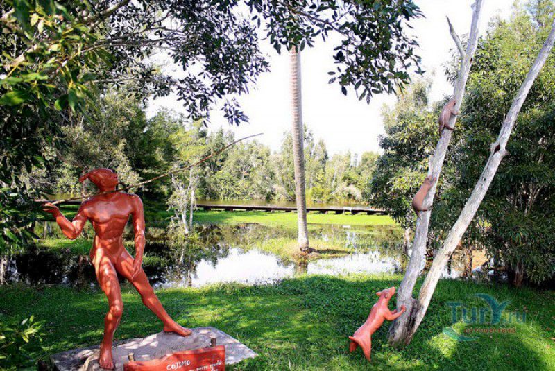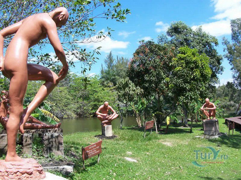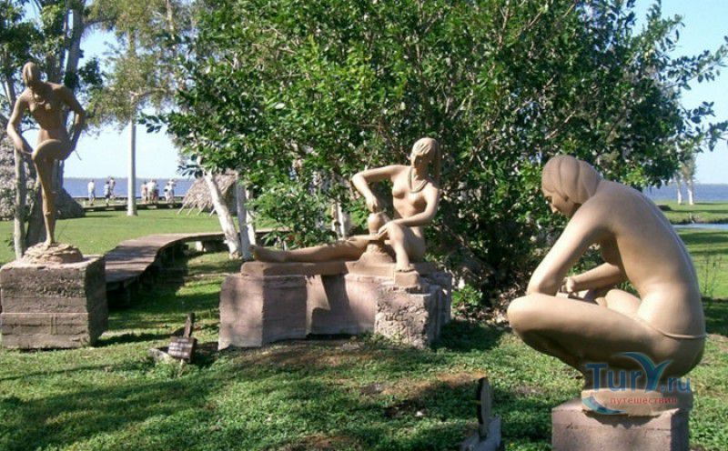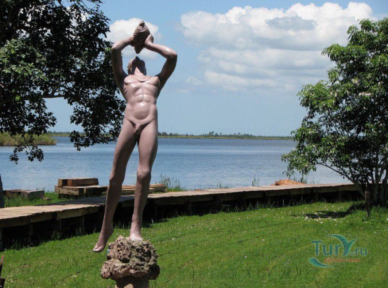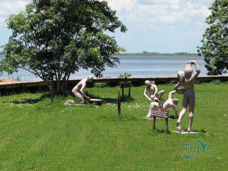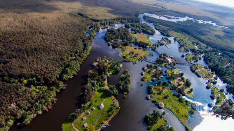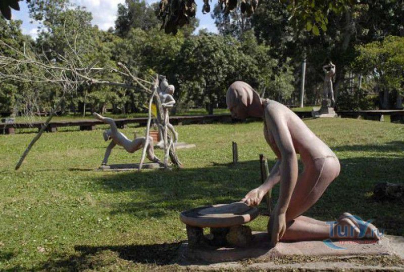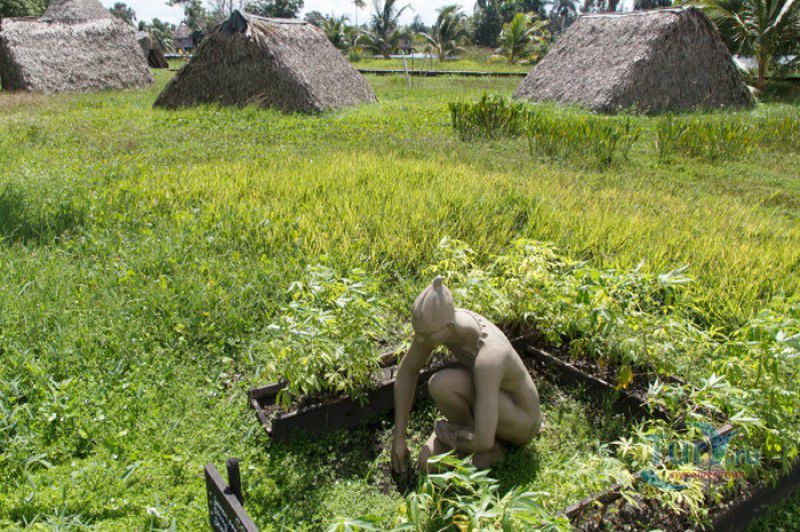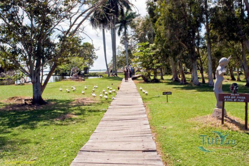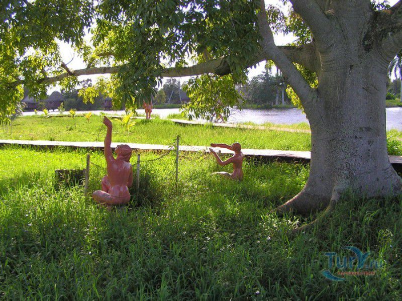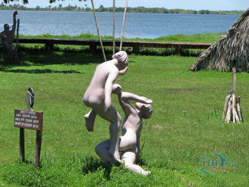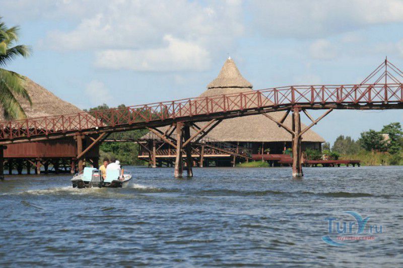 Индейская Деревня Гуама расположена на территории Национального парка Сапата (Parque Nacional Ciénaga de Zapata), на правом берегу озера Лагуна-дель-Тесоро. Индейцы из племени Таино жили в этих местах задолго до открытия Кубы Христофором Колумбом, аборигены занимались охотой, рыбной ловлей, возделывали землю. Строительство туристического курорта на озере Сокровищ (так называют Лагуну-дель-Тесоро), стилизованного под индейскую деревню, было инициировано кубинскими властями, работы контролировал сам Фидель Кастро. В создании курорта принимали участие архитекторы, историки, биологи, художники и строители из Гаваны и других городов страны. Были вырыты каналы, расчищены лагуна и протоки, через ручьи переброшены деревянные мостики, укреплены берега, высажены деревья и цветы, которые много веков назад росли в этих местах. В результате здесь была воссоздана самая настоящая индейская деревня, названная по имени вождя племени - Гуама. 44 индейские хижины на сваях построены из соломы и пальмовых листьев и со всех сторон окружены водой. Добраться в деревню можно только на лодке. Посетители, высадившись на берег, словно переносятся на несколько веков назад - здесь можно прогуляться среди индейских жилищ, заглянуть внутрь хижины и познакомиться с бытом аборигенов. Деревня "населена" индейцами Таино - по всей территории поселения расставлены глиняные статуи в натуральную величину, изображающие коренных жителей, занимающихся охотой, рыбной ловлей, добычей огня, приготовлением пищи и другими повседневными делами. На лужайке, рядом со скульптурами индейских женщин, готовящих еду, "резвятся" дети, здесь есть и воины, и охотники, и индейская старуха, и, даже, мечтатель. Автором композиции является известнейший кубинский скульптор Рита Лонга. На территории индейской деревни есть отель, ресторан, в котором можно отведать крокодильего мяса, сувенирный магазин и гончарная мастерская. Посетители могут стать зрителями костюмированных шоу, "современные Таино" готовы провести для гостей различные церемонии, среди которых посвящение в индейцев, общение с духами и свадебные обряды.