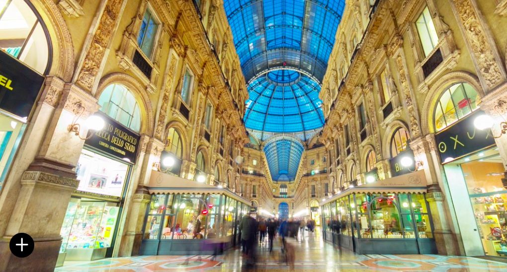 Галерея — старейший торговый центр Италии, красиво украшенный мозаикой и кариатидами вокруг окон и балконов, сохранил свой блеск. Магазины роскошных брендов в пассаже, которые могли бы легко конкурировать с магазинами на Виа Монтенаполеоне или Виа делла Спига, соседствуют с классическими ресторанами с белыми скатертями, закусочными знаменитых поваров, легендарными заведениями, такими как бар Camparino и культовый книжный магазин искусства Bocca, основанный в Галерее с 1930 года, но имевший значительное культурное присутствие в городе с девятнадцатого века.