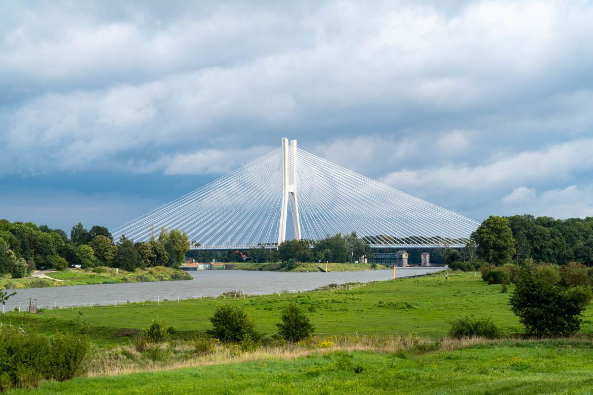 Это самый большой переход в Польше - его длина составляет 1742 метра, а высота пилона, на котором подвешен мост, составляет 122 метра.