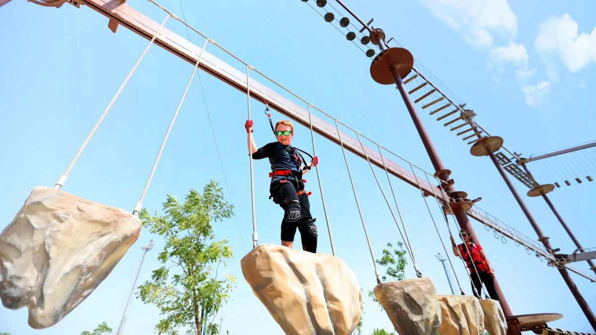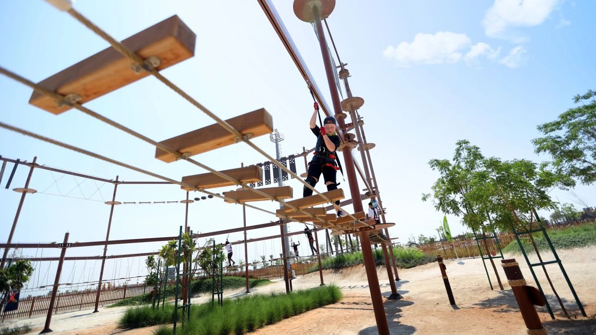 Поднимитесь на новую высоту и полюбуйтесь впечатляющим горизонтом Абу-Даби и невероятным видом на море в захватывающем веревочном парке. Здесь вы можете пройти трехуровневую веревочную трассу с 31 препятствием, 100-метровым зиплайном, 13-метровым прыжком в свободном падении и 50-футовой стеной для скалолазания. Зеленая цепь рекомендуется для детей в возрасте от 7 до 10 лет, Синяя цепь — от 11 до 14 лет, а Черная цепь — от 15 лет и старше. Закрытая обувь обязательна, и будут применяться ограничения по росту и весу.