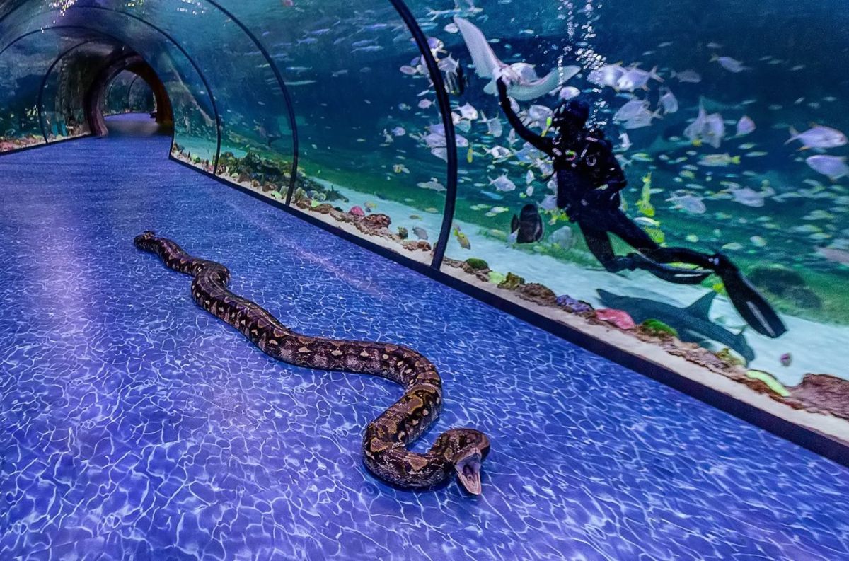 У гостей также будет возможность увидеть вблизи самую большую живую змею в мире. Сетчатый питон отлично плавает, весит 115 кг, имеет длину более семи метров и предпочитает диету из уток и кроликов. Суперзмея родилась в рамках программы разведения в неволе в Лос-Анджелесе и будет жить в зоне затопленного леса, где посетители смогут увидеть ее замысловатые узоры и впервые увидеть огромные размеры этого чуда природы.
